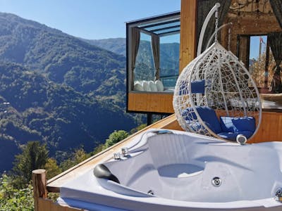 - O descolado hotel que oferece cabanas criativas com quartos de vidro suspensos no alto da montanha | 📍 Geórgia 🇬🇪