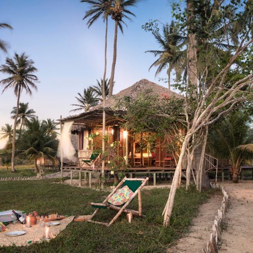 Experiência praiana: bangalô de palha e jantar na areia