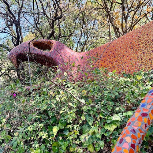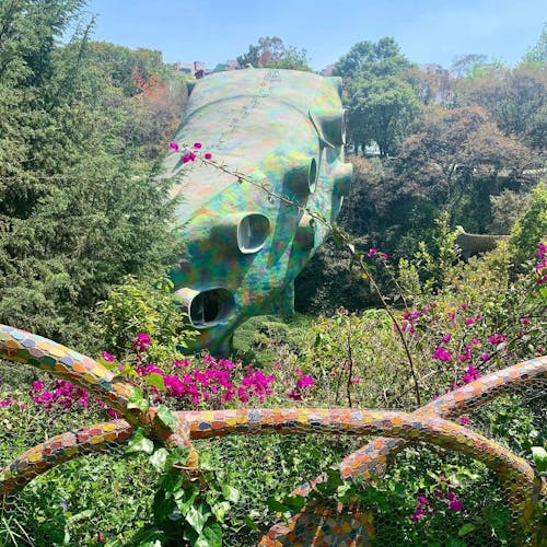 A boca da cobra é construída ao redor de uma caverna natural, leva os visitantes a observar as diferentes flores e árvores, os sons da floresta e a variedade de texturas, naturais e artificiais. Círculos de cerâmica coloridos incrustados na cabeça, olhos e presas da cobra, assim como outros detalhes são inspirados na arte Huichol.