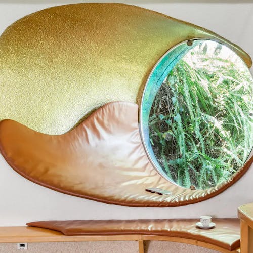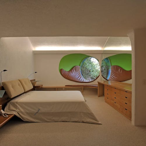 Um dos espaços reserva um museu onde diversos projetos de arquitetura orgânica e da própria casa, ficam expostos em formatos de maquete - é incrível.