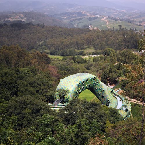 A criação de todo espaço foi um desafio em nível da construção, devido aos terrenos irregulares de 5.000m2 em que se encontra.