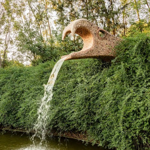A água descartada pelas casas, passa para a estação de tratamento que possui o complexo, após ser tratada também é enviada para o espelho d'água, para a irrigação das áreas verdes. A estrutura principal é o corpo de Quetzalcóatl, com contorno de aspecto maleável e feito de ferrocimento de cor iridescente e esmeralda dourada, que se combina com um azul, como as penas do Quetzal. O acesso se dá pelas costas da serpente, através de um longo corredor. Na cobertura - a grande cobra, que é uma construção de três pisos: no superior - cascavel - encontra-se a caixa d'água, abaixo dela a guarita e dentro, a casa das máquinas e armazéns para cada um dos departamentos.