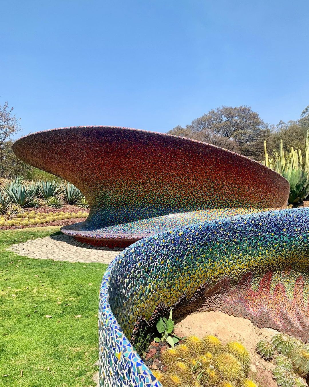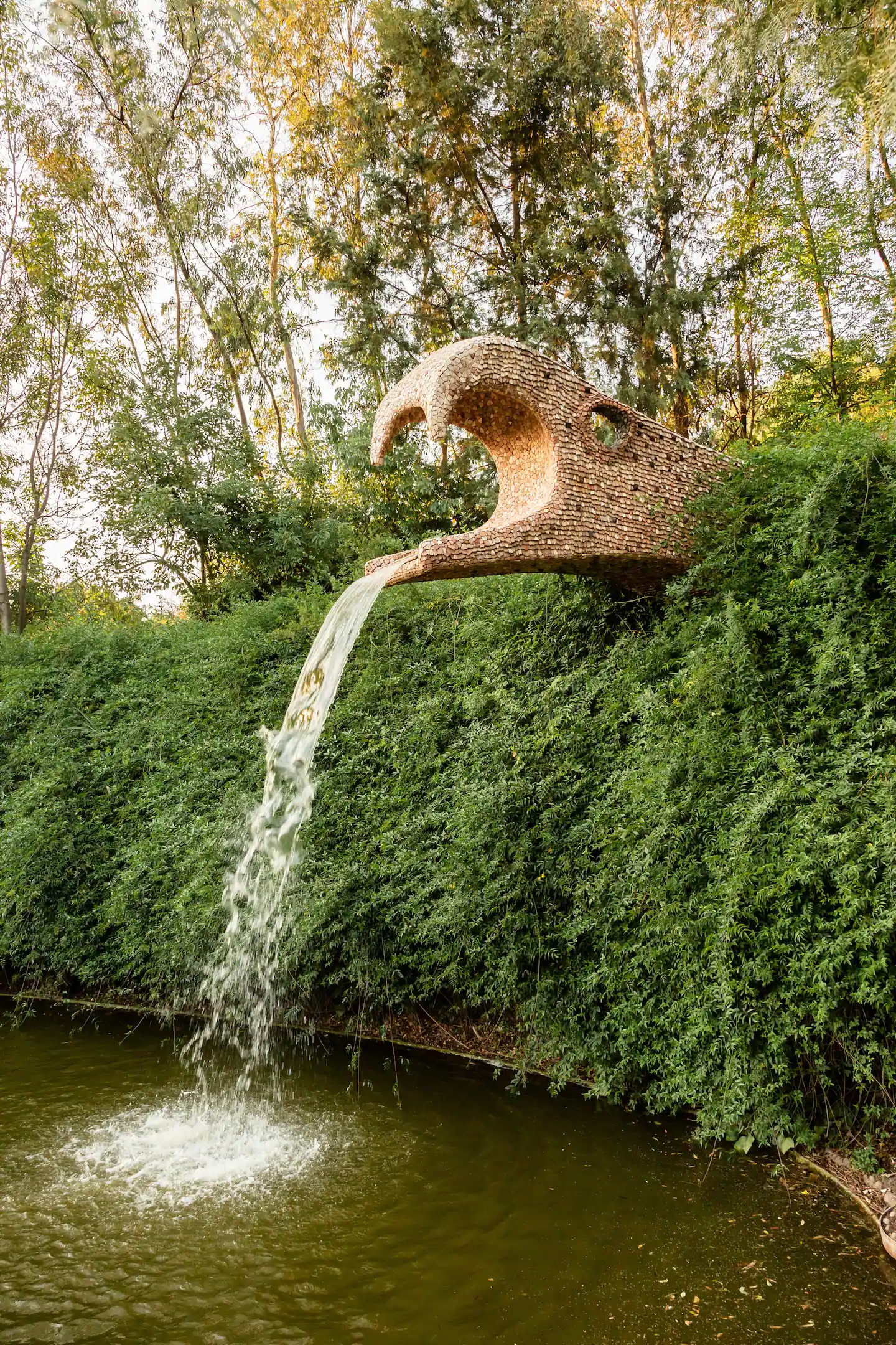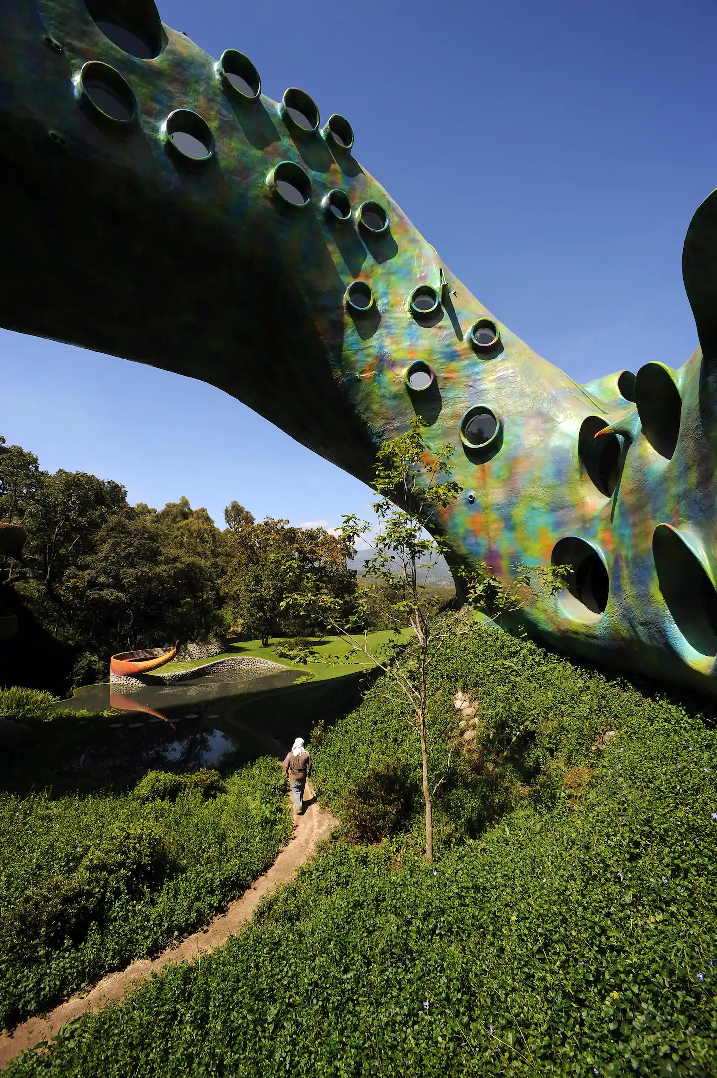 A boca da cobra é construída ao redor de uma caverna natural, leva os visitantes a observar as diferentes flores e árvores, os sons da floresta e a variedade de texturas, naturais e artificiais. Círculos de cerâmica coloridos incrustados na cabeça, olhos e presas da cobra, assim como outros detalhes são inspirados na arte Huichol.