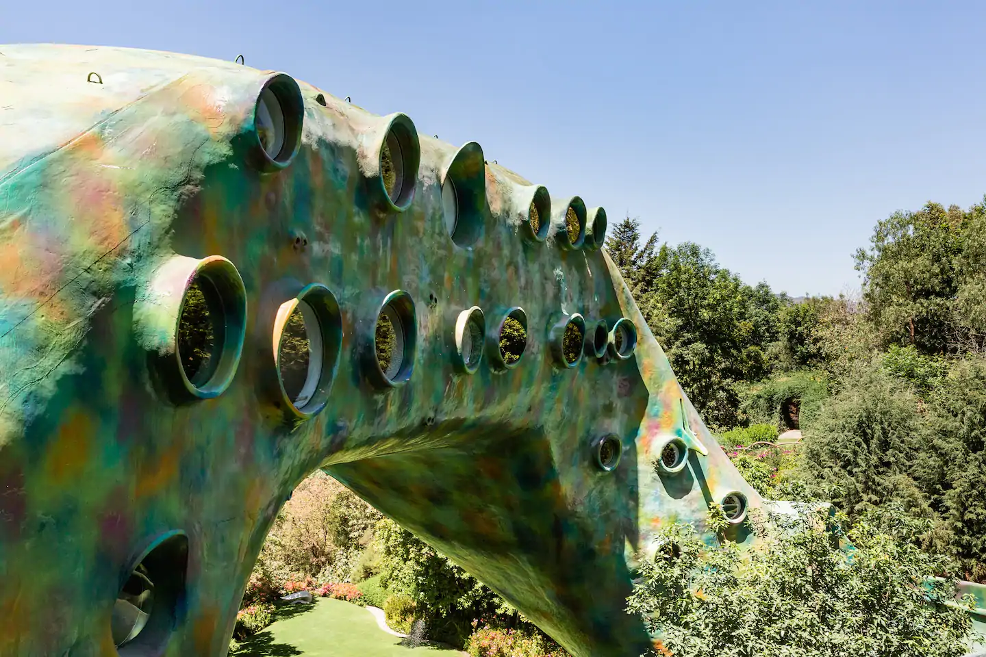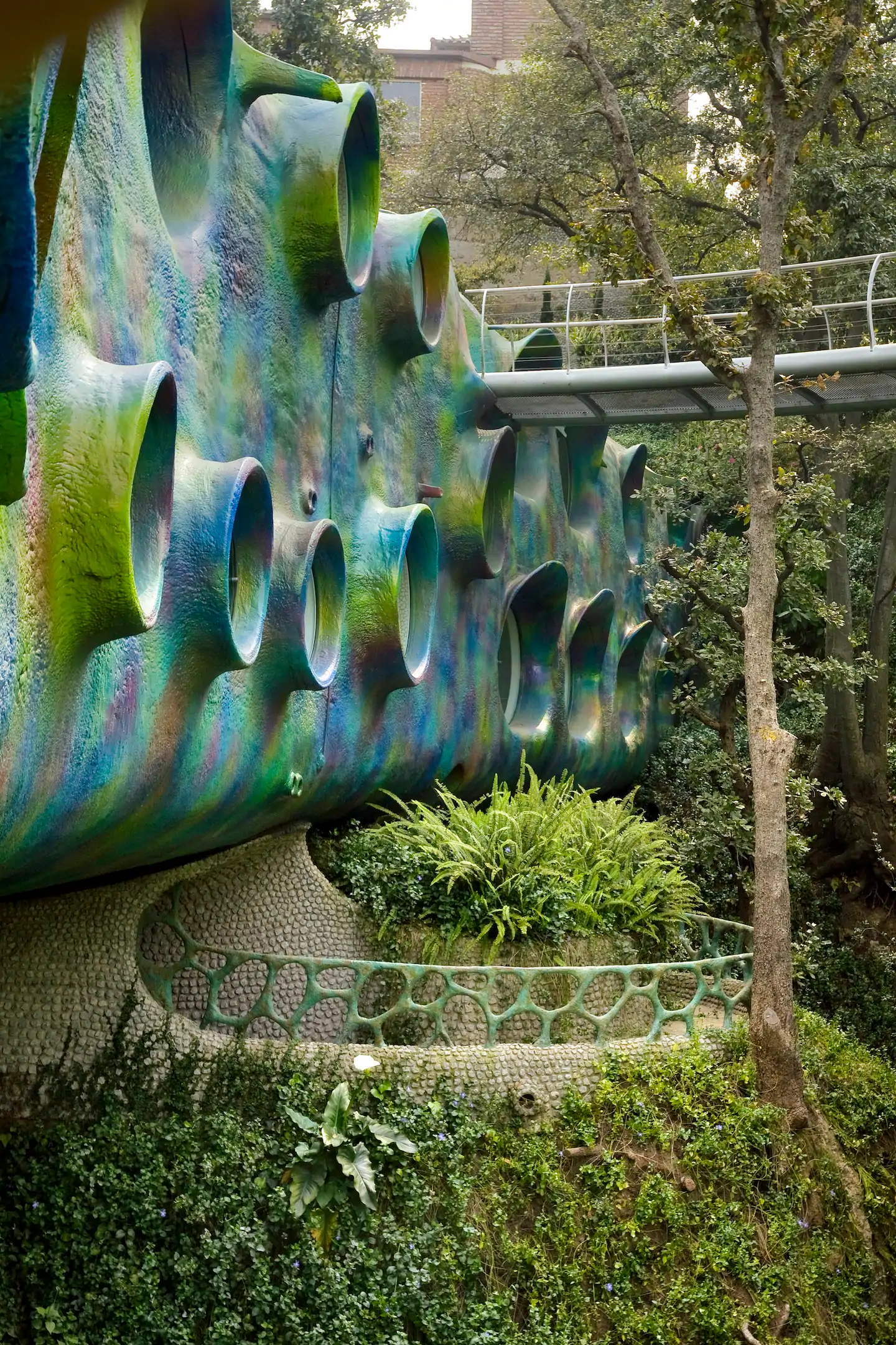 Na parte de fora da casa, além dos diversos jardins e espelhos d'água, há corredores que formam caminhos por toda extensão da "cobra", em volta, por cima e até túneis.