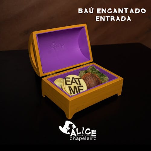 - 🪄 Entrada: Baú Encantando diversas delícias como croquete de salame da serra e queijo colonial, tortéi frito e biscoitos com geleia de pimenta