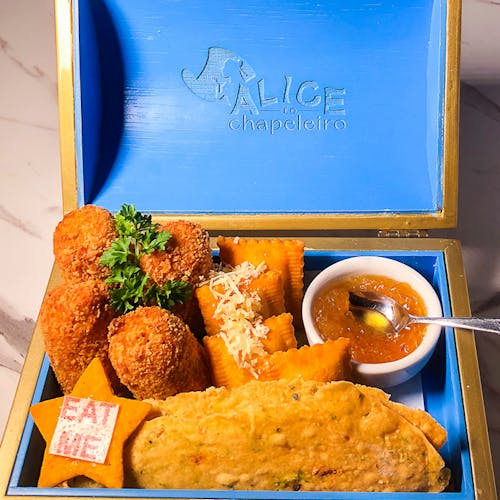 Comida: o menu conta com jantar completo de entrada, prato principal e sobremesa. O menu infantil para crianças de 3 a 10 anos – possui quatro opções de pratos e todos eles incluem sobremesa. São oito opções de pratos principais para adultos e todos podem ser acompanhados de salada. Os drinks diferentões tem apresentação que seguem a temática do lugar, alguns com intervenções antes de beber, outros usando fumaça ou flores. Podem ser feitos com ou sem álcool. Sobremesas: há disponível seis opções seguindo a proposta visual de incluir o tema do País das Maravilhas nos pratos.