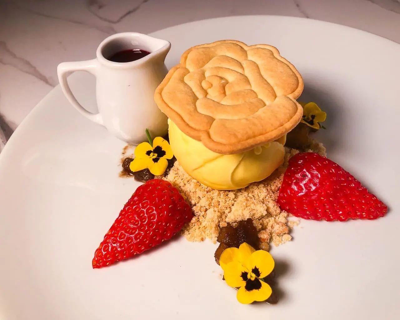 - 🍝 Alice Jardim de Flores - Espaguete ao molho pesto, tomate assado, tomate cereja, mussarela de búfala, flores comestíveis e crocante de queijo 🌱 *vegetariano