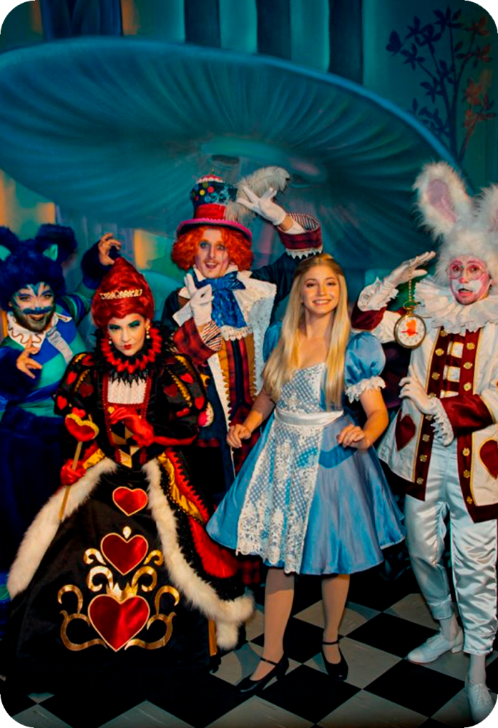 Restaurante, pocket shows, loja, bar...em um ambiente repleto de detalhes do mundo de Alice no País das Maravilhas, os visitantes irão curtir uma cenografia exclusiva que vai além dos ambientes internos: no jardim xícaras, cogumelos e coelhos gigantes. Sessão de fotos com os personagens e claro...comida temática! Tudo isso em mais de 800 m² e espaço para até 250 pessoas que irão ao País das Maravilhas!