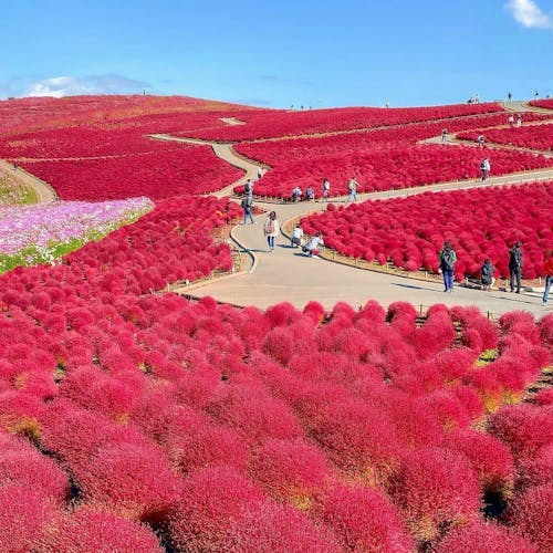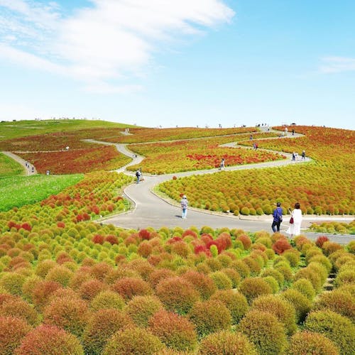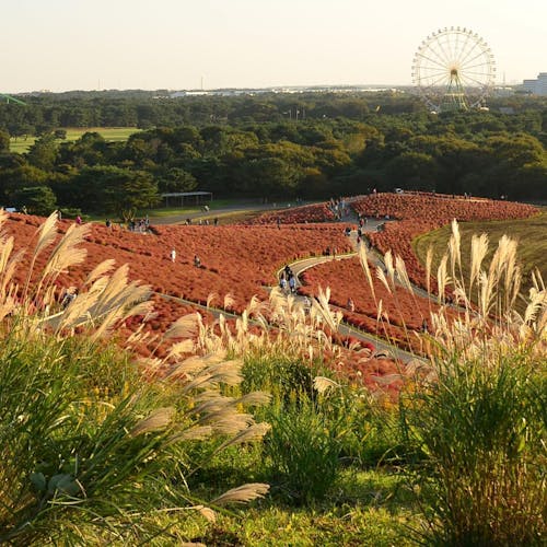 Localizado na área de frente para o Oceano Pacífico na cidade de Hitachinaka, o Hitachi Seaside Park oferece belas flores em seus imensos jardins bem cuidados durante todo o ano.