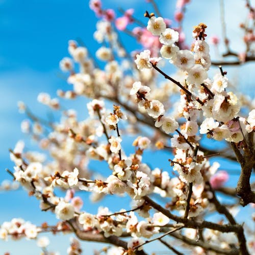 As flores do inverno: tulipa de gelo, ameixeira japonesa.