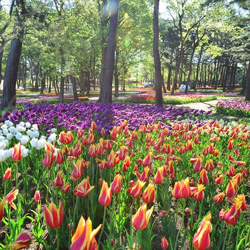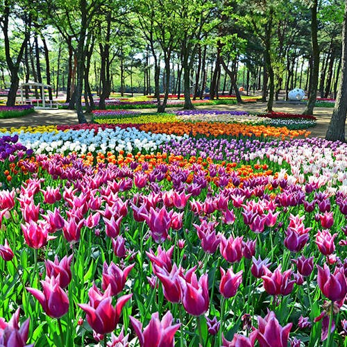 Conheça as flores no auge das estações: (algumas espécies permanecem ainda durante algumas semanas na transição dos meses, no site oficial há o calendário completo. Link logo abaixo das fotos).