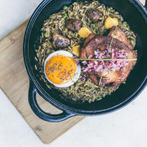 - 🍤. Tropical Rice: Arroz estilo tailandês com abacaxis grelhados, castanha, leite de coco e pimenta doce com camarões grelhados