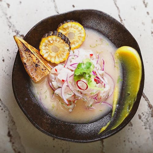- 🐟 Ceviche Nikkei: Salmão em salsa Nikkei, abacate e crocante de tapioca