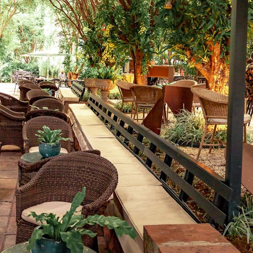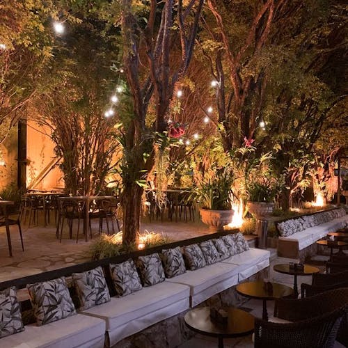 O AMA.ZO fica no espaço do jardim da Casa de Don’Ana - o casarão que falamos antes. Cercado de jabuticabeiras centenárias e muita vegetação desde a entrada, a noite luzinhas se distribuem por todo o ambiente deixando o clima ainda mais aconchegante. Para os dias chuvosos há uma cobertura sutil mas eficiente. As mesas e sofás que compõe o local, ficam com distância agradável umas das outras.