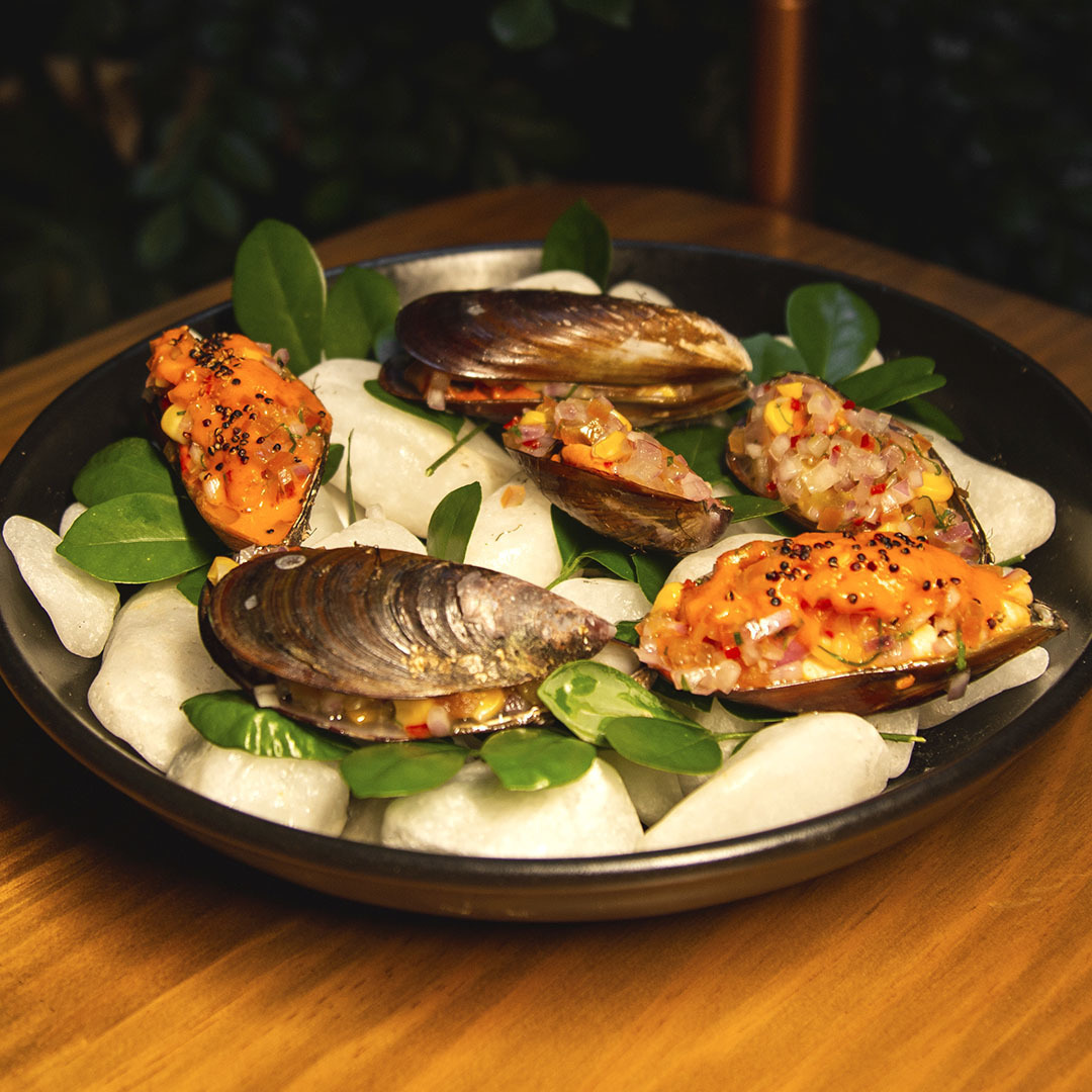 - 🥣. Sopa Seca De Choros: Fideuá cremoso de mexilhões com leve crosta por baixo, chalaquita e aioli de pimenta