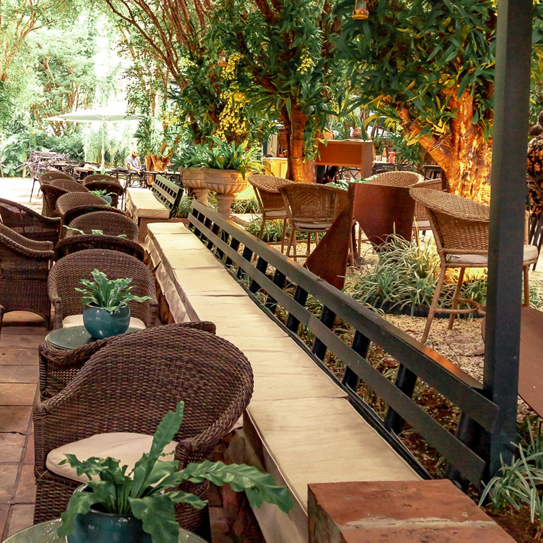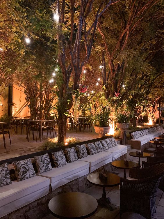 O AMA.ZO fica no espaço do jardim da Casa de Don’Ana - o casarão que falamos antes. Cercado de jabuticabeiras centenárias e muita vegetação desde a entrada, a noite luzinhas se distribuem por todo o ambiente deixando o clima ainda mais aconchegante. Para os dias chuvosos há uma cobertura sutil mas eficiente. As mesas e sofás que compõe o local, ficam com distância agradável umas das outras.