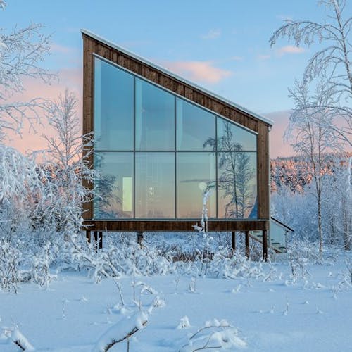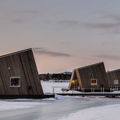 Inaugurado em Janeiro de 2020 o Artic Bath é um hotel de experiência e luxo na Escandinávia. A proposta é ser um espaço flutuante sustentável, construído à beira do Rio Lule que fica congelado no inverno.
