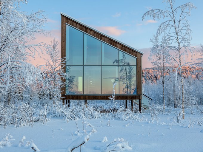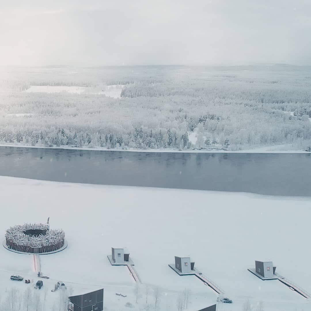 Inaugurado em Janeiro de 2020 o Artic Bath é um hotel de experiência e luxo na Escandinávia. A proposta é ser um espaço flutuante sustentável, construído à beira do Rio Lule que fica congelado no inverno.