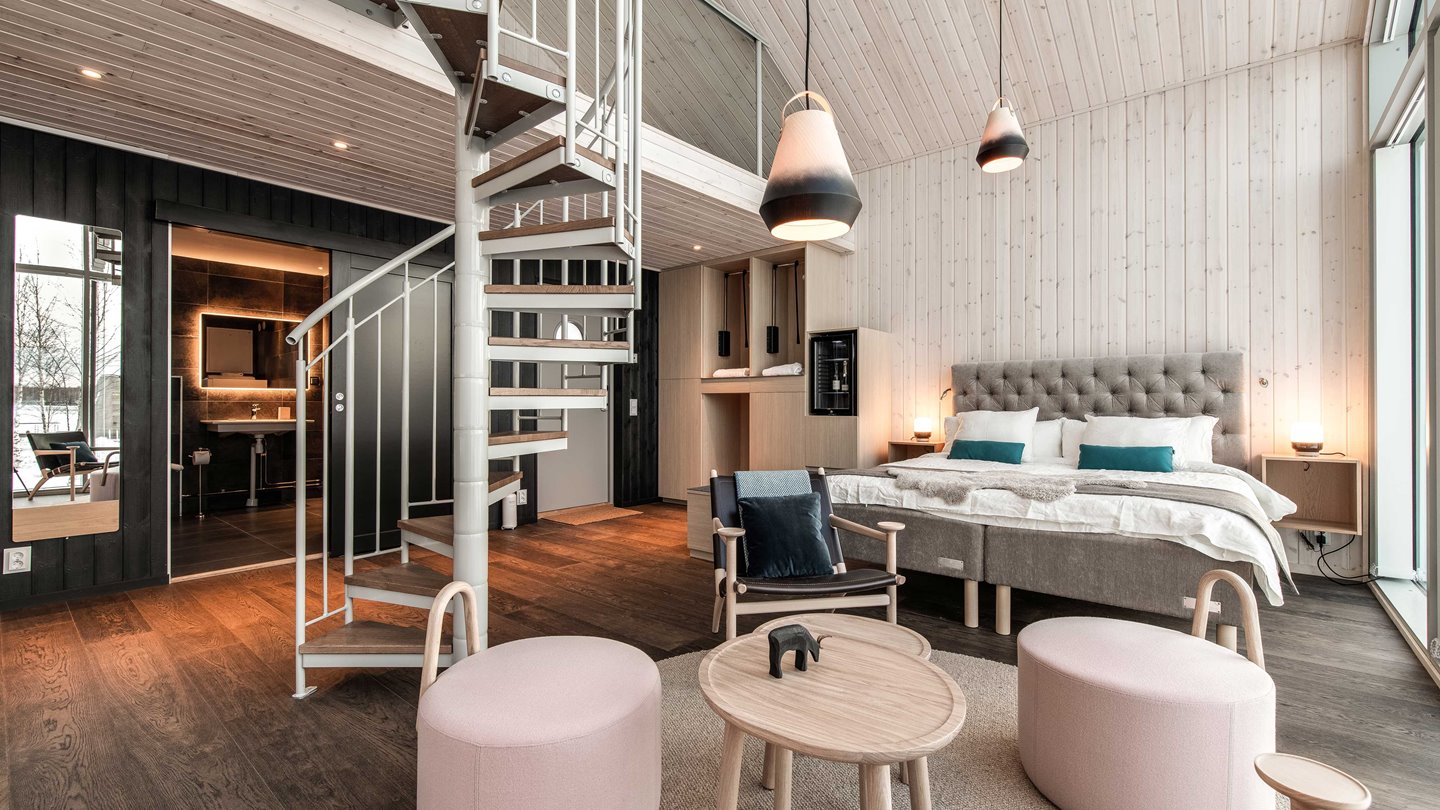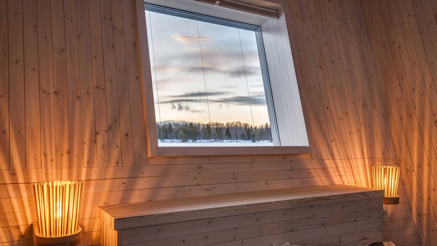 Com a construção de madeira e parte dele com diversos pedaços que lembram gravetos, ele foi projetado para parecer um aglomerado de madeira encravada no rio. Outra experiência do local é que logo no centro do hotel, ao redor do círculo de madeira é possível tomar o banho ártico gelado - você teria coragem?