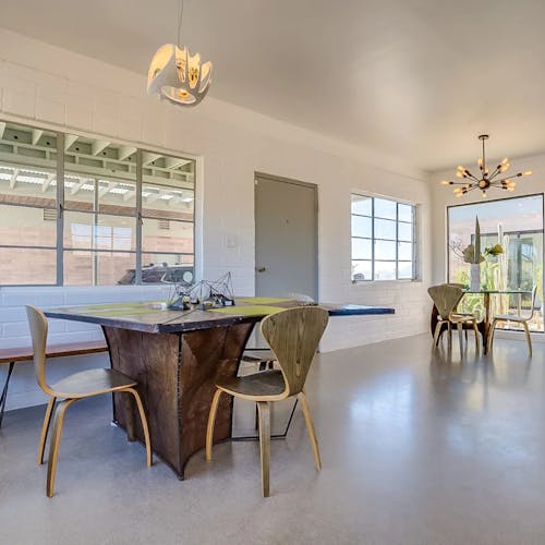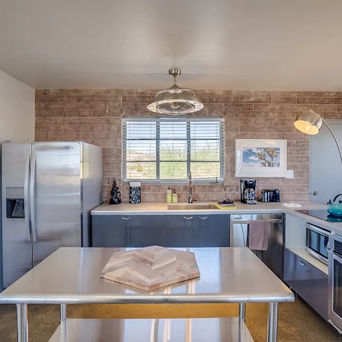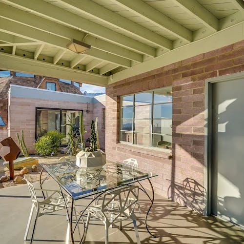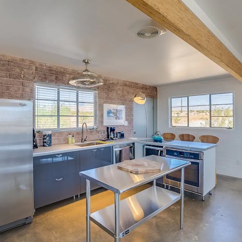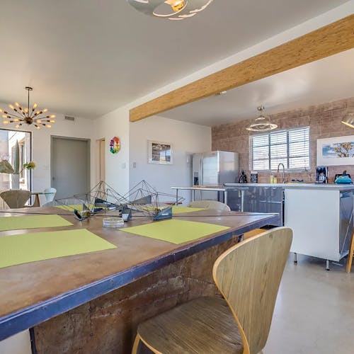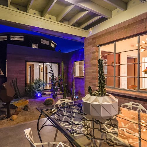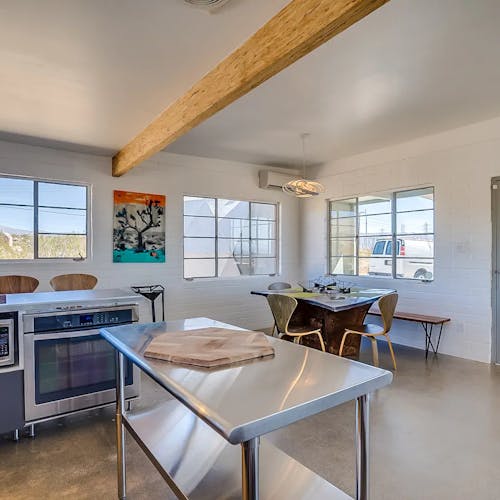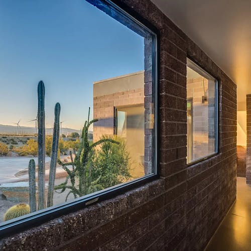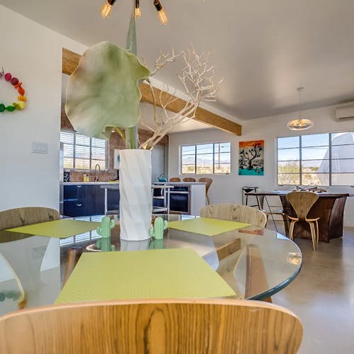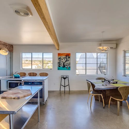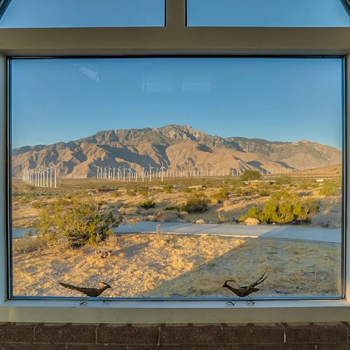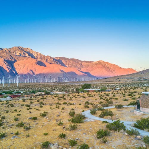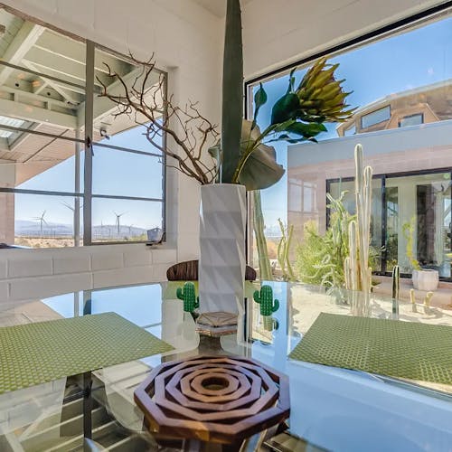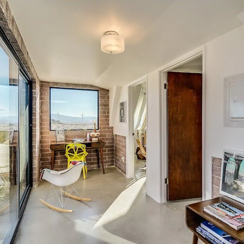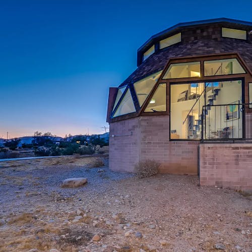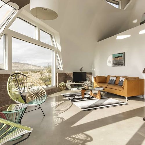 Acorde com o nascer do sol sobre o Parque Nacional Joshua Tree e o Coachella Valley e aprecie o pôr do sol na cúpula da sala de estar com vistas panorâmicas da cordilheira San Jacinto. À noite, veja as estrelas pelas clarabóias da casa e janelas no teto e laterais do quarto do mezanino, tudo isso com total privacidade já que a casa é a única construção por ali.