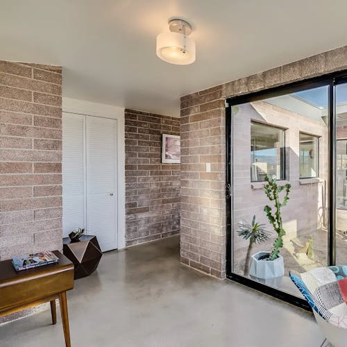 O segundo quarto, também no piso térreo, oferece total privacidade com vista privilegiada do Monte San Jacinto. A área de escritório permite que você desfrute de vistas infinitas do Vale do Deserto.