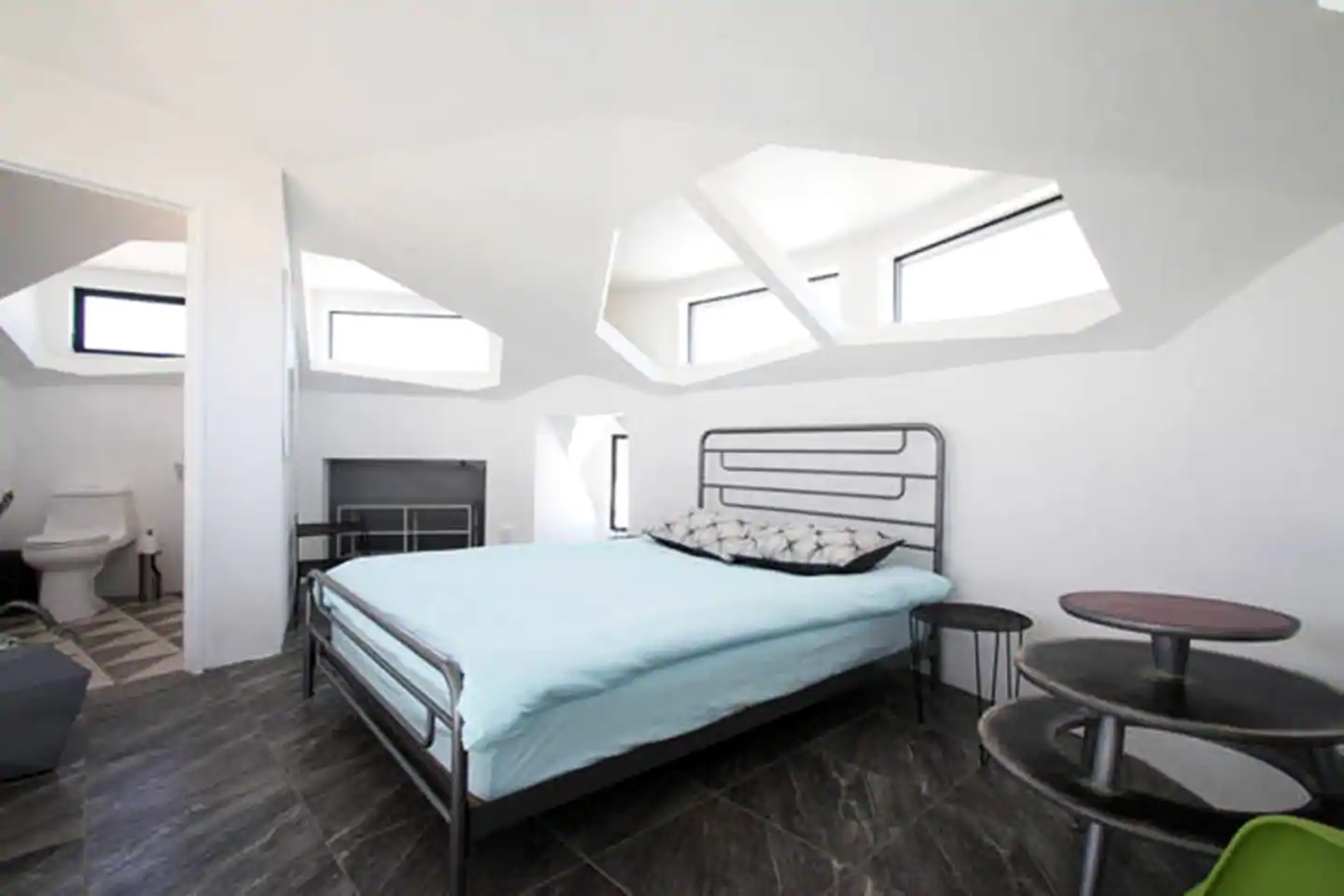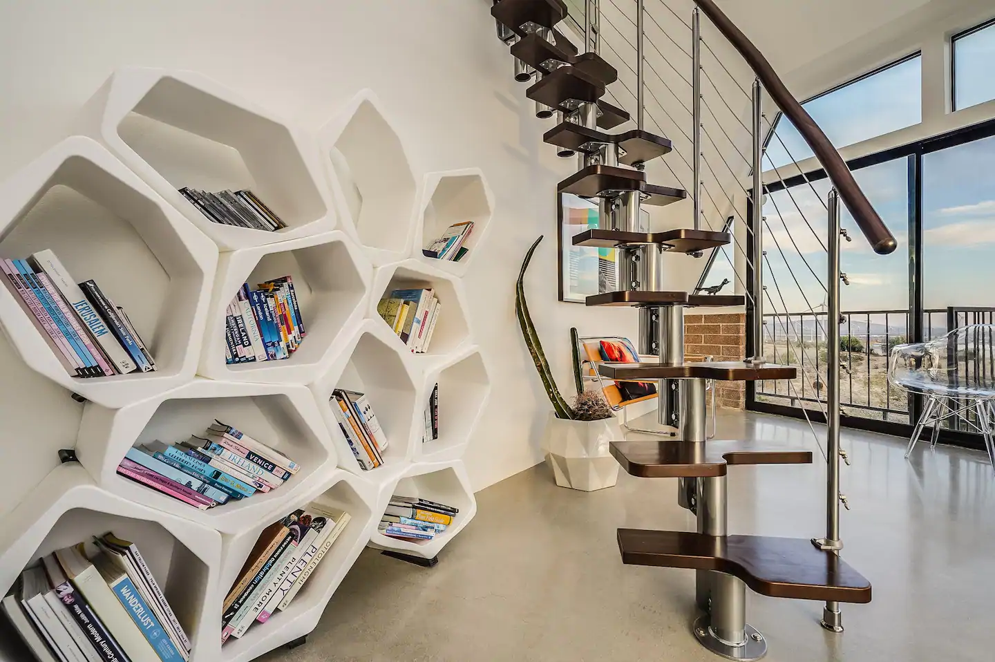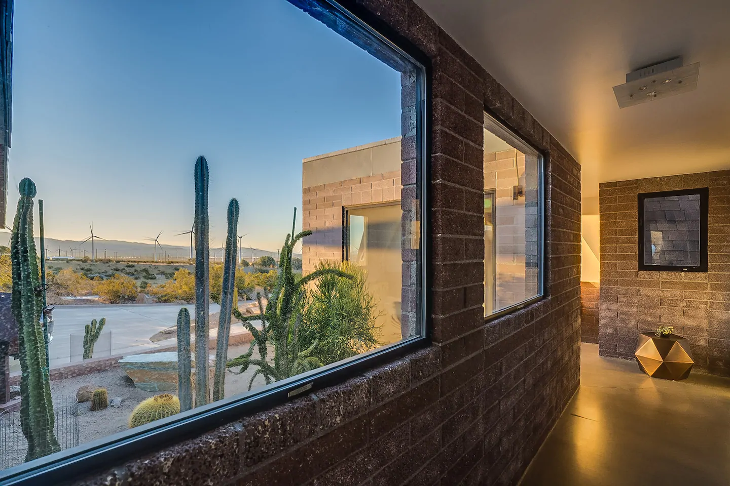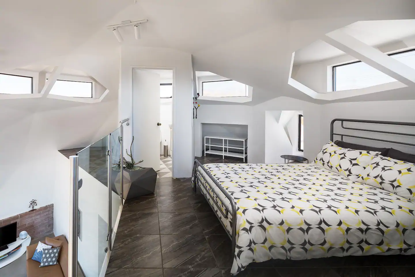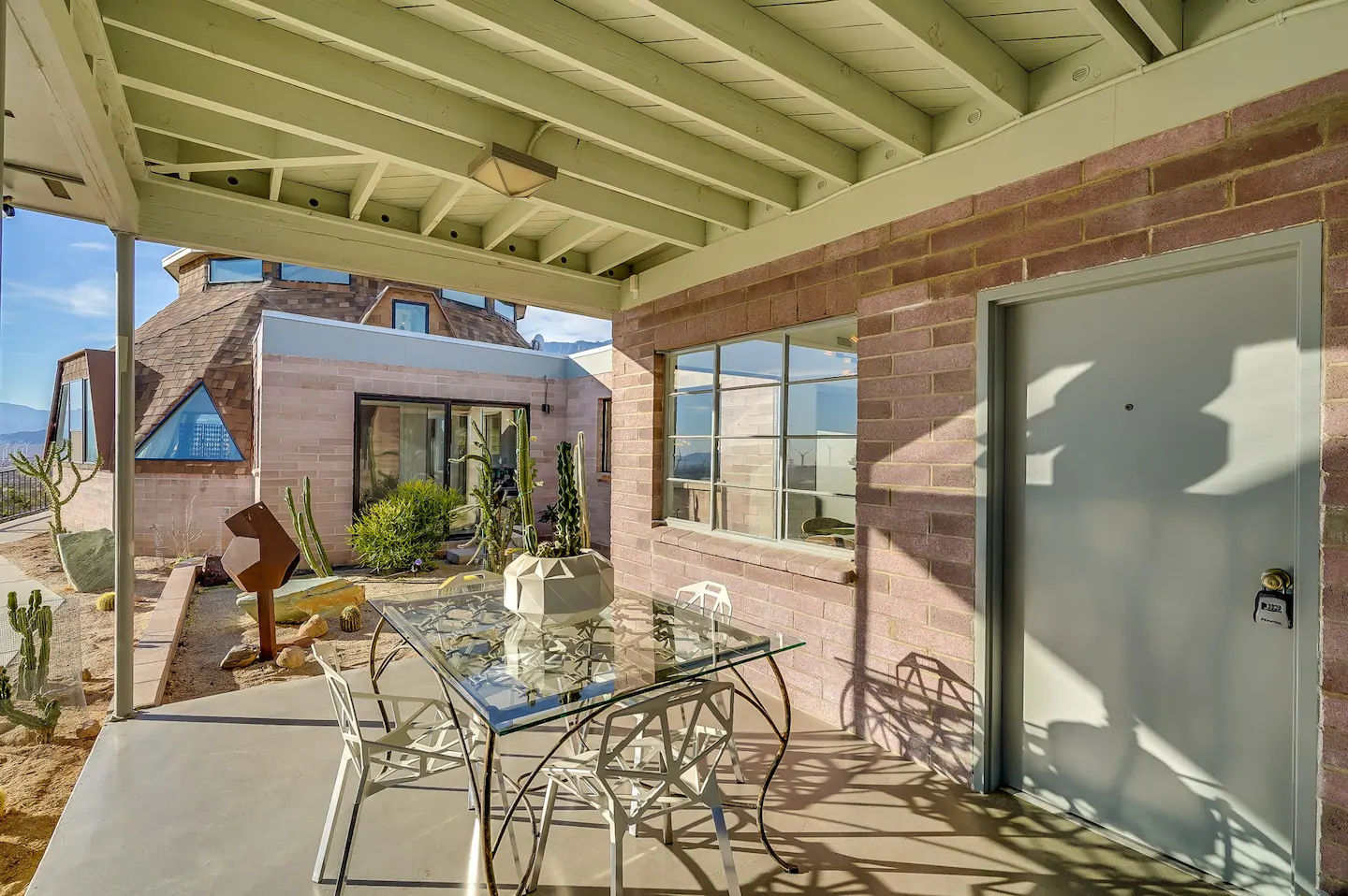 A Palm Springs Dome Home como é chamada a propriedade, é uma casa privativa que pode ser alugada pelo Airbnb (link abaixo das fotos). A arquitetura se mistura entre uma construção irregular e uma cúpula geodésica com vista 360 graus do deserto e montanhas da região de Palm Springs na Califórnia. Ao redor da propriedade, muitos moinhos de vento trazem uma atmosfera totalmente diferente e inusitada, com um visual realmente especial do Coachella Valley e as luzes da cidade de Palm Springs.