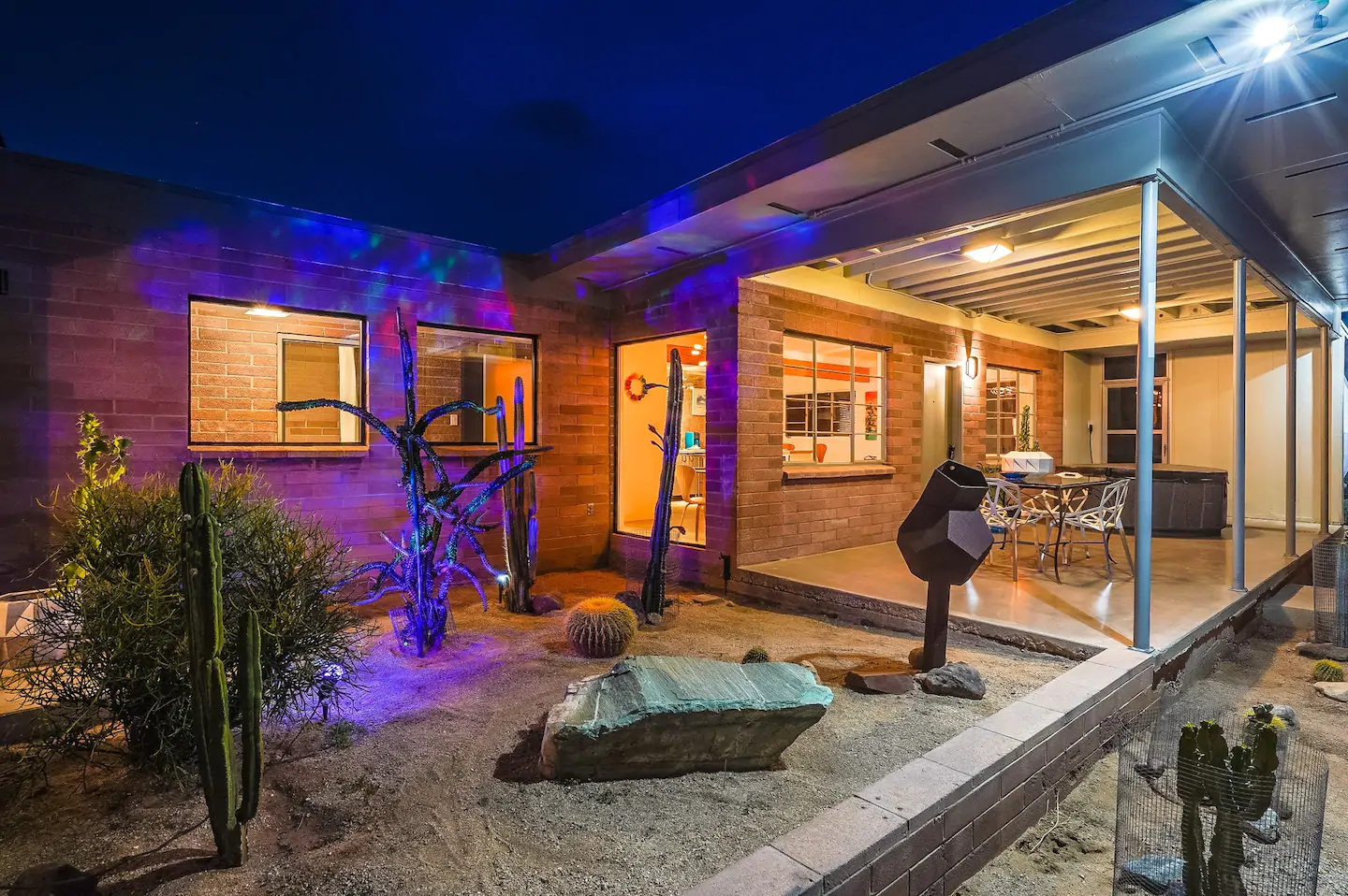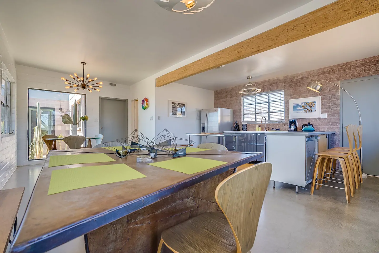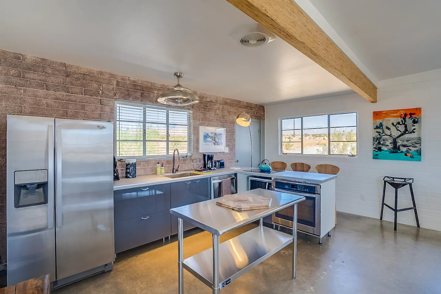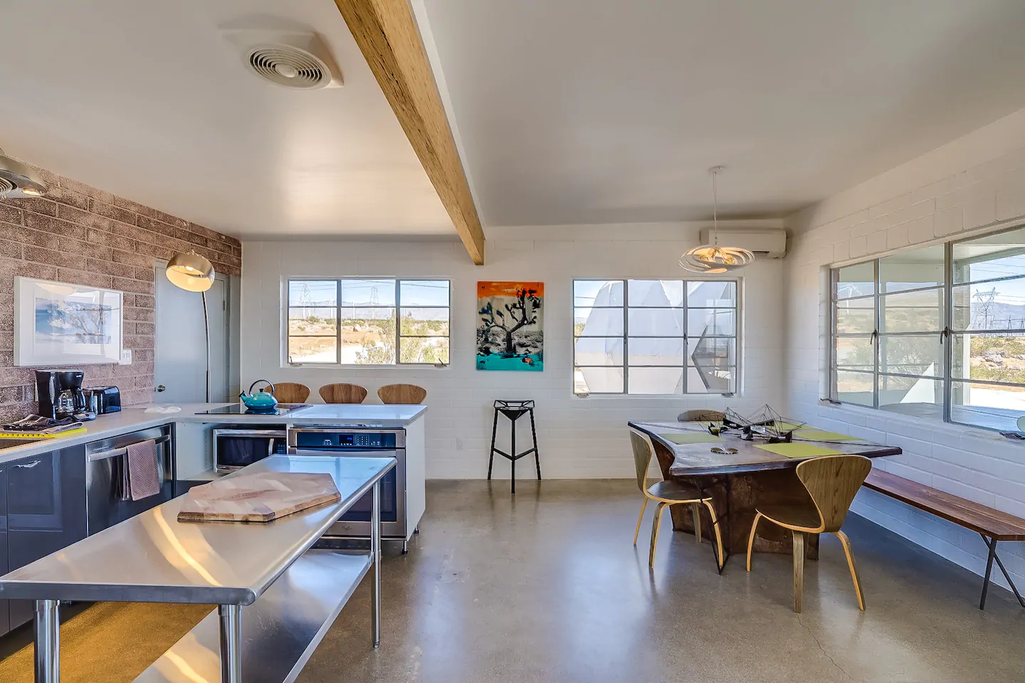 Acorde com o nascer do sol sobre o Parque Nacional Joshua Tree e o Coachella Valley e aprecie o pôr do sol na cúpula da sala de estar com vistas panorâmicas da cordilheira San Jacinto. À noite, veja as estrelas pelas clarabóias da casa e janelas no teto e laterais do quarto do mezanino, tudo isso com total privacidade já que a casa é a única construção por ali.