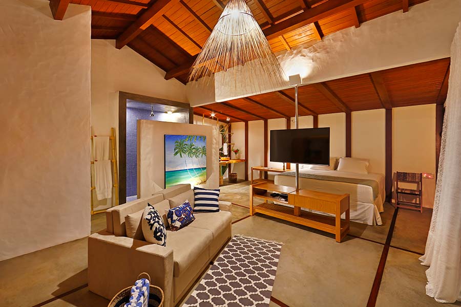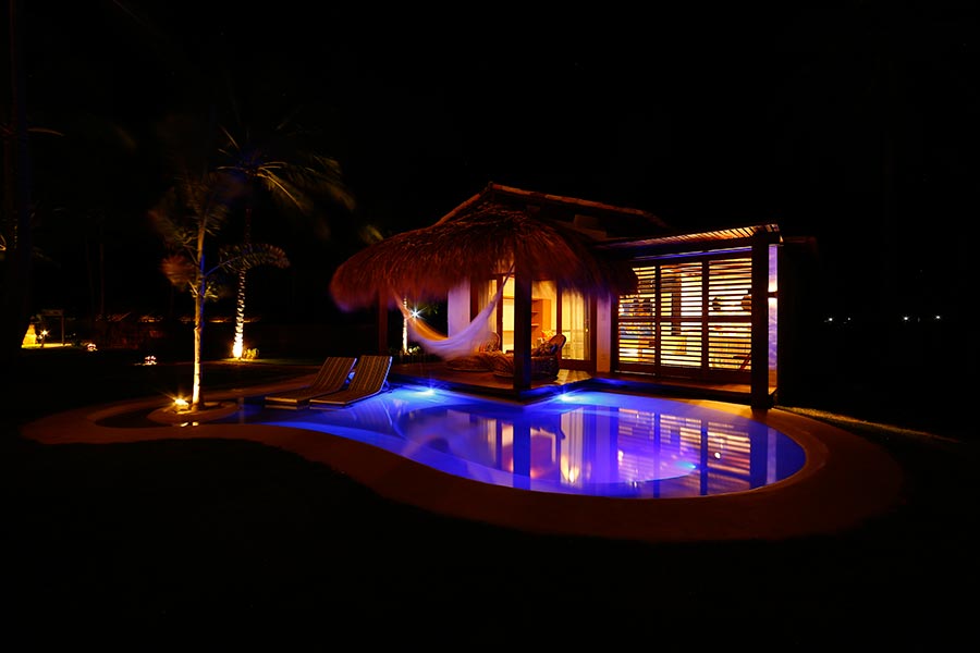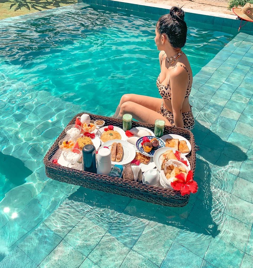 A hospedagem complementa a experiência, ainda mais com um bangalô bacanérrimo de piscina privativa, você sai da sua cabana e já cai na água. Quer mais? Que tal tomar seu café da manhã dentro da sua piscina? Ele chega em uma bela bandeja aquática. :)