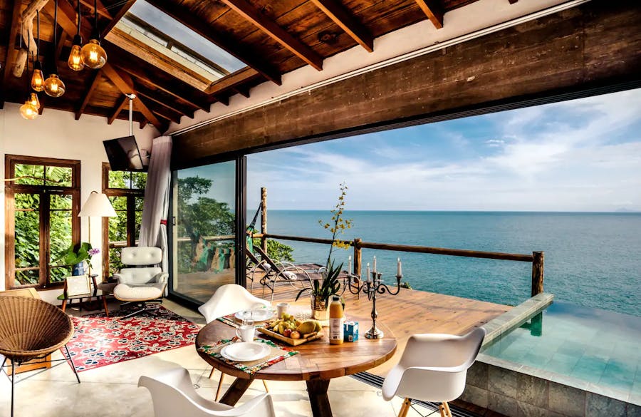 O bangalô de Ilhabela com cama sob as estrelas e piscina sobre o mar: A experiência de hospedagem na Casa das Águas