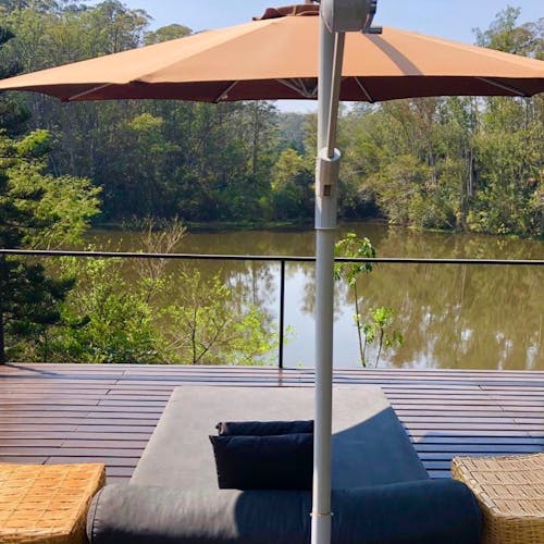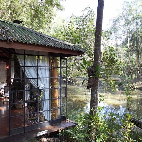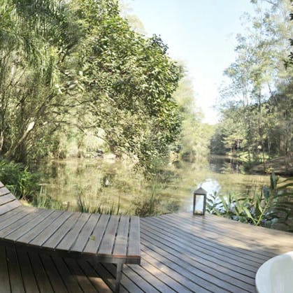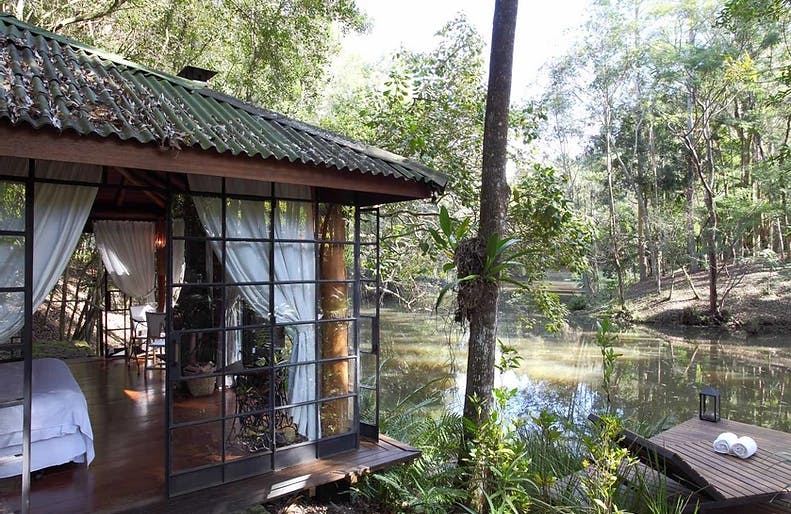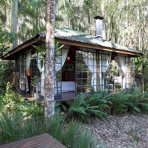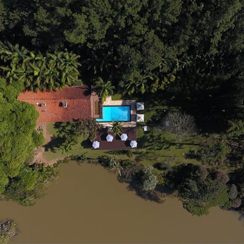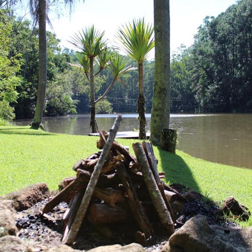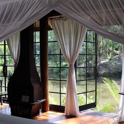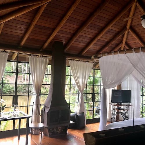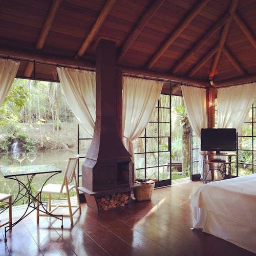 Bangalô de vidro no lago em Atibaia