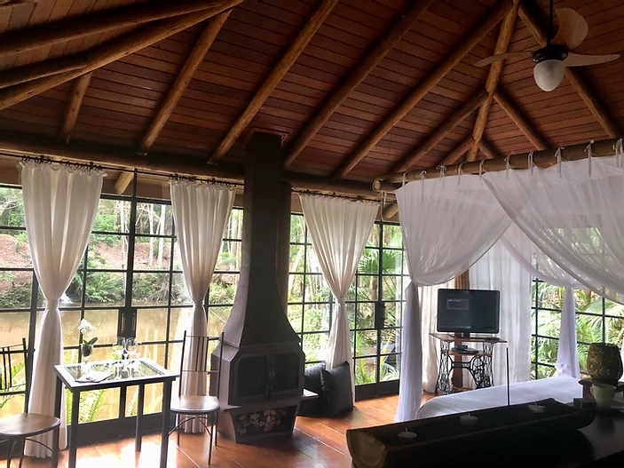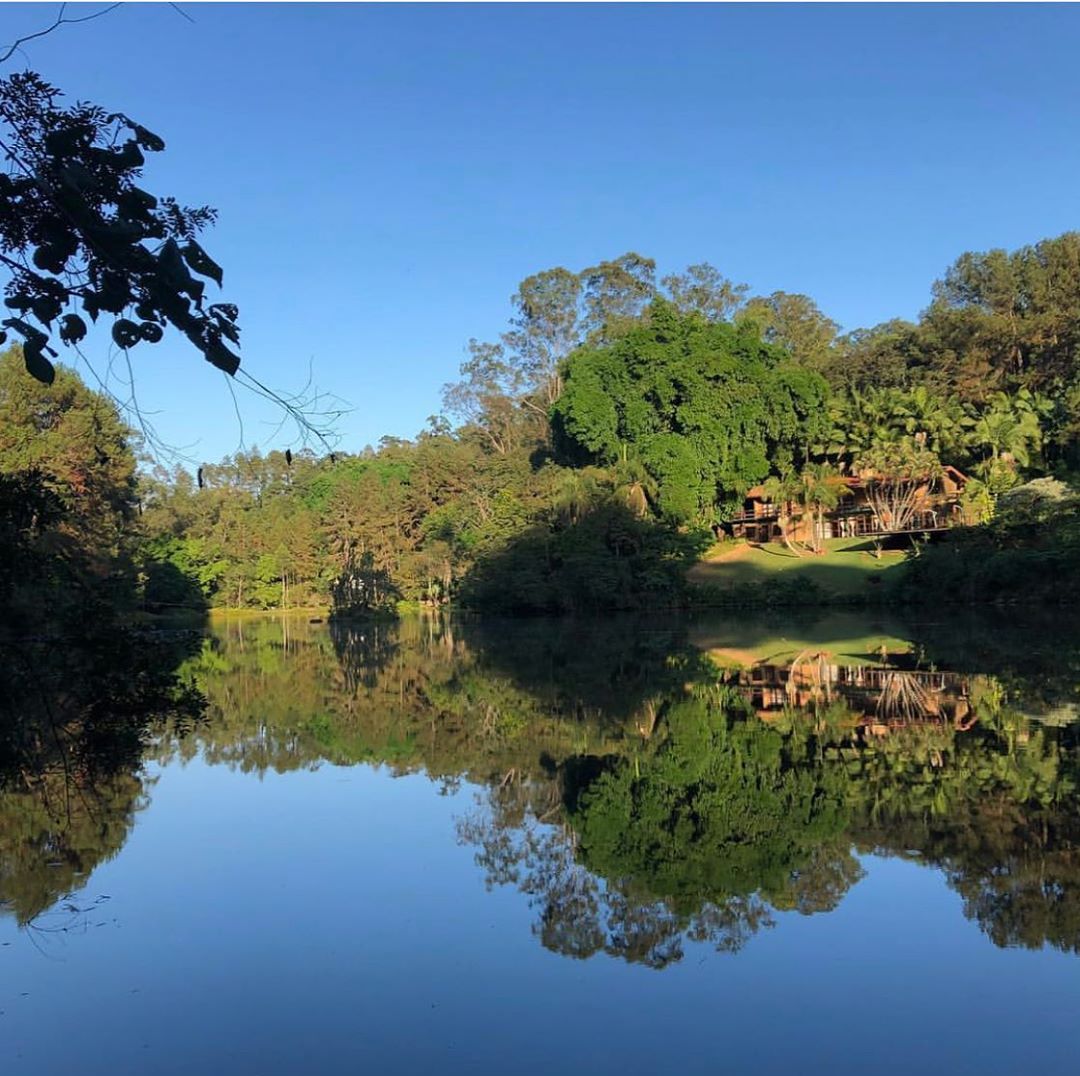 Bangalô de vidro no lago em Atibaia
