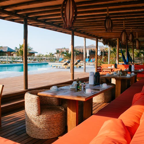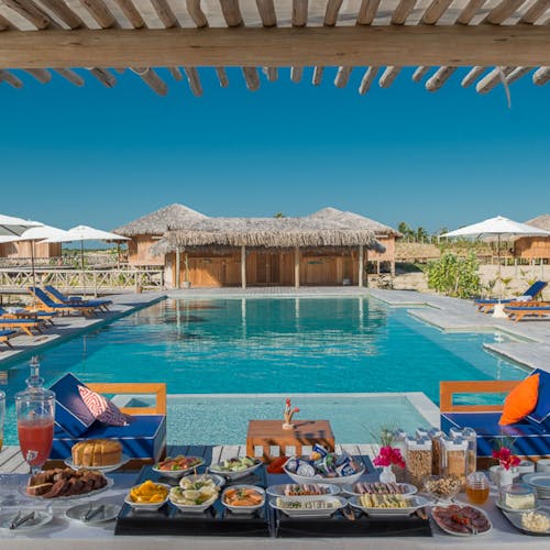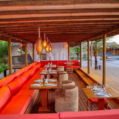 - 🍤 Beach Restaurante: O infinito do oceano, o rio e as dunas de areia branca são o cenário das refeições aqui. Aberto ao público. Possui serviço de praia.