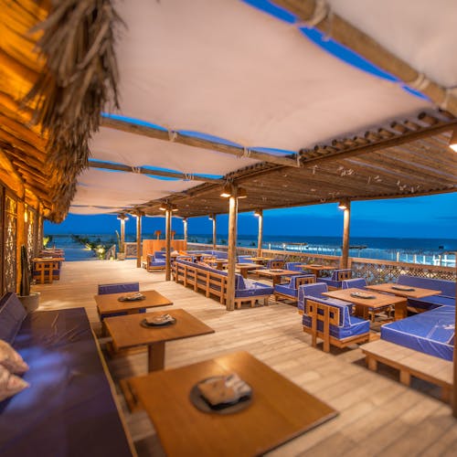- 🥘. Restaurante com vista para o mar e gazebos na praia