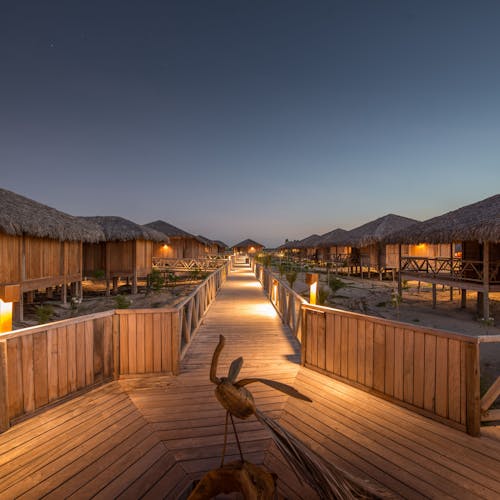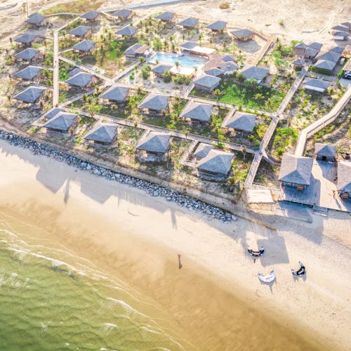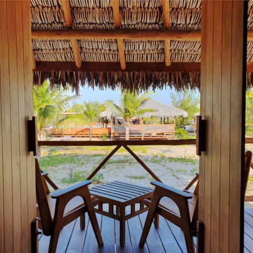 São apenas 23 bangalôs, a maioria com vista para o mar, construídos sobre palafitas para que a vegetação local e as dunas permanecessem intocadas, oferecendo exclusividade e uma experiência ímpar de privacidade, ecoturismo, sustentabilidade e esporte. Todos os bangalôs são projetados para permitir a abundante circulação da brisa fresca do mar e, assim, não precisar de ar-condicionado. Não espere encontrar TV por lá - elas foram trocadas por janelas que são verdadeiras telas naturais para admirar a vista do mar e as manobras dos kitesurfista.