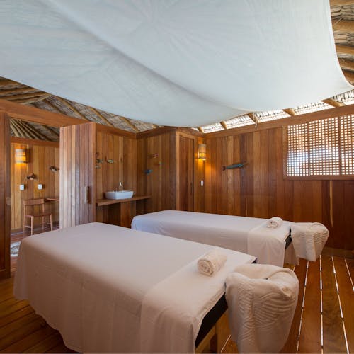 LODGE FAMILIA : É composto por duas suítes independentes ligadas por uma passarela e viradas para o oceano. Com capacidade para até 5 pessoas
