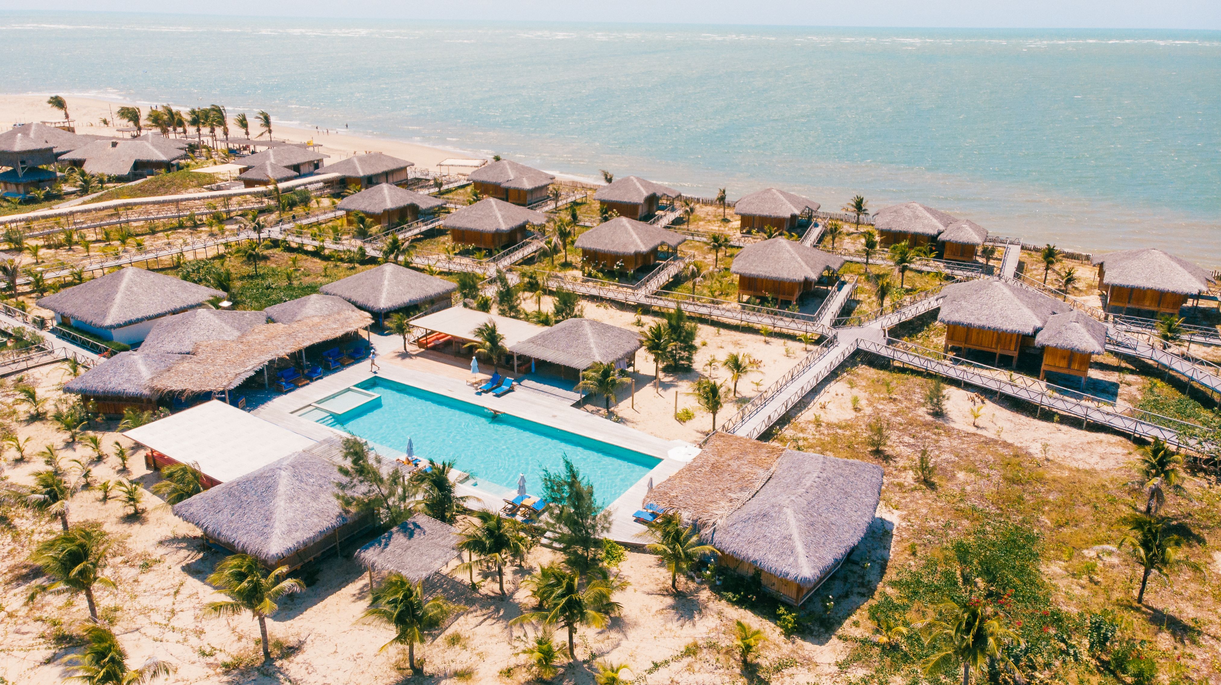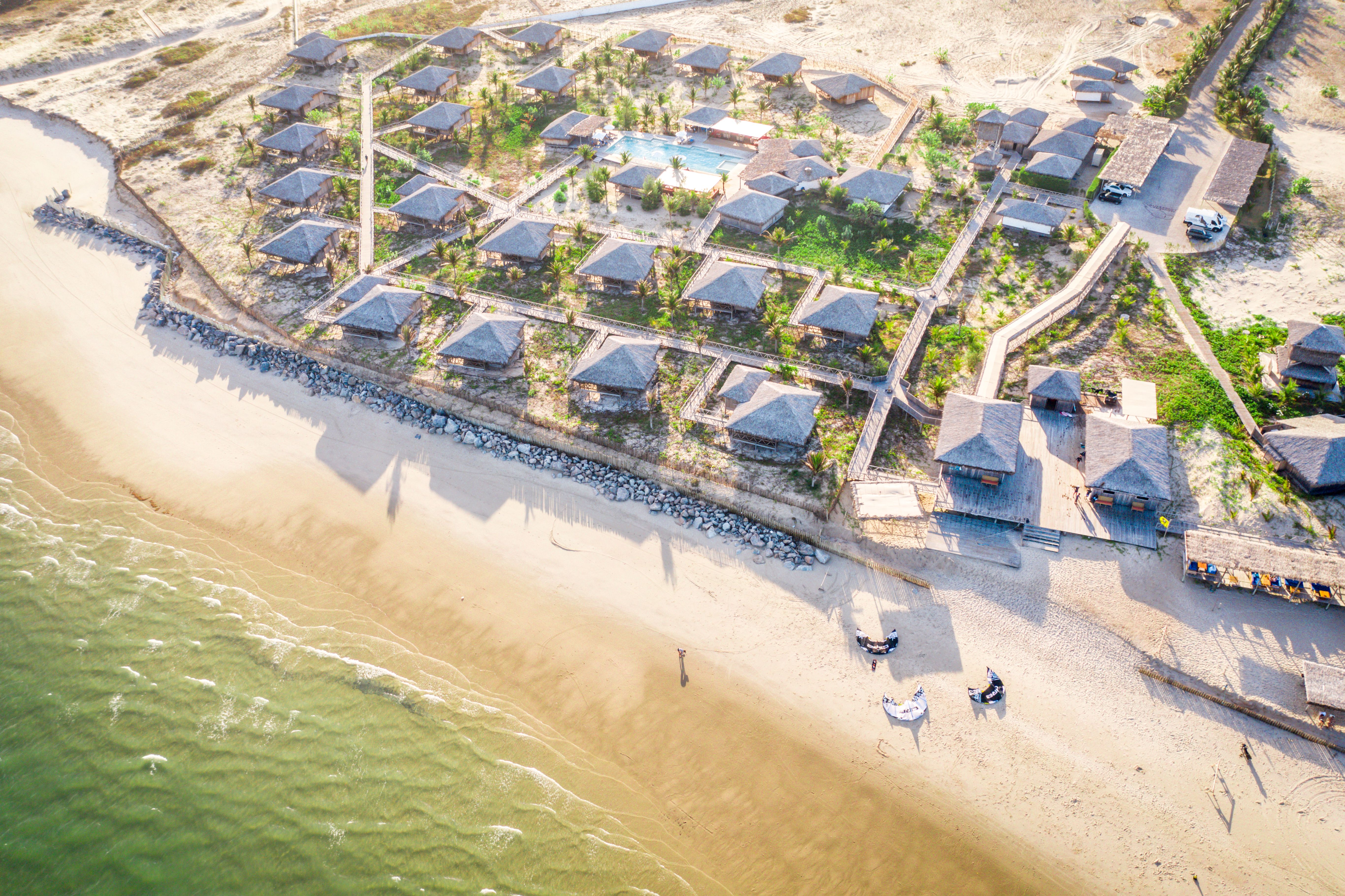 São apenas 23 bangalôs, a maioria com vista para o mar, construídos sobre palafitas para que a vegetação local e as dunas permanecessem intocadas, oferecendo exclusividade e uma experiência ímpar de privacidade, ecoturismo, sustentabilidade e esporte. Todos os bangalôs são projetados para permitir a abundante circulação da brisa fresca do mar e, assim, não precisar de ar-condicionado. Não espere encontrar TV por lá - elas foram trocadas por janelas que são verdadeiras telas naturais para admirar a vista do mar e as manobras dos kitesurfista.