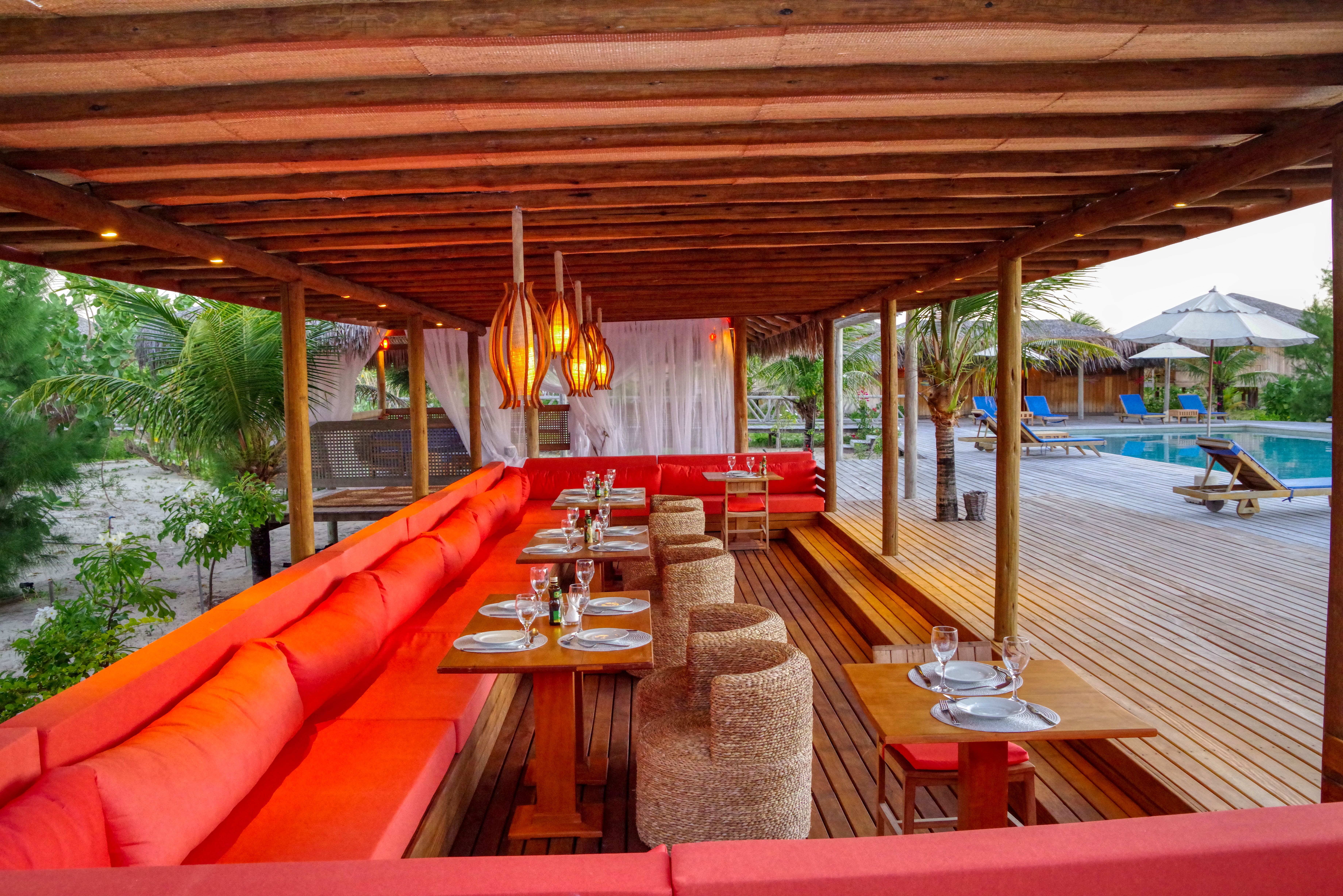 - 🍤 Beach Restaurante: O infinito do oceano, o rio e as dunas de areia branca são o cenário das refeições aqui. Aberto ao público. Possui serviço de praia.