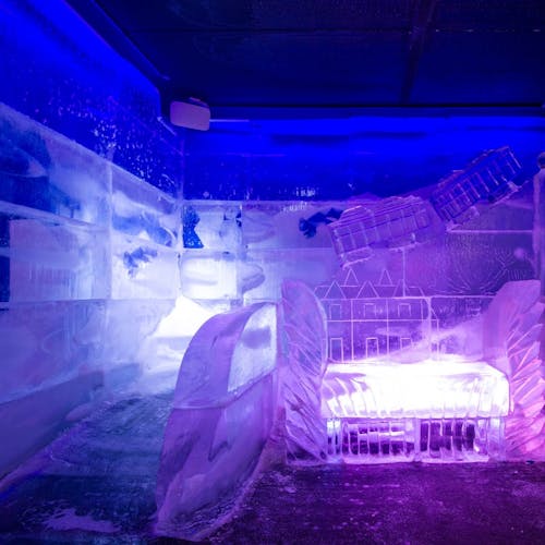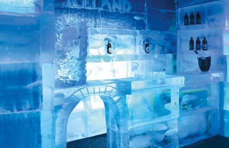 Uma pulseira branca no braço mostra ao barman que ele pode te servir as bebidas. Lá dentro há um escorregador de gelo, para descer é preciso subir alguns degraus e sentar em cima do casaco (ele é comprido) para escorregar e não molhar a roupa.