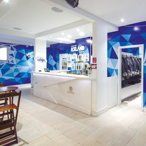 O Iceland fica localizado no subsolo do Mercado São Bento. Antes de entrar no bar principal, os visitantes vão para uma antessala colocar a roupa. Após se vestir e ouvir as instruções, passa-se por uma porta parecida com as de frigorífico para então entrar no bar.
