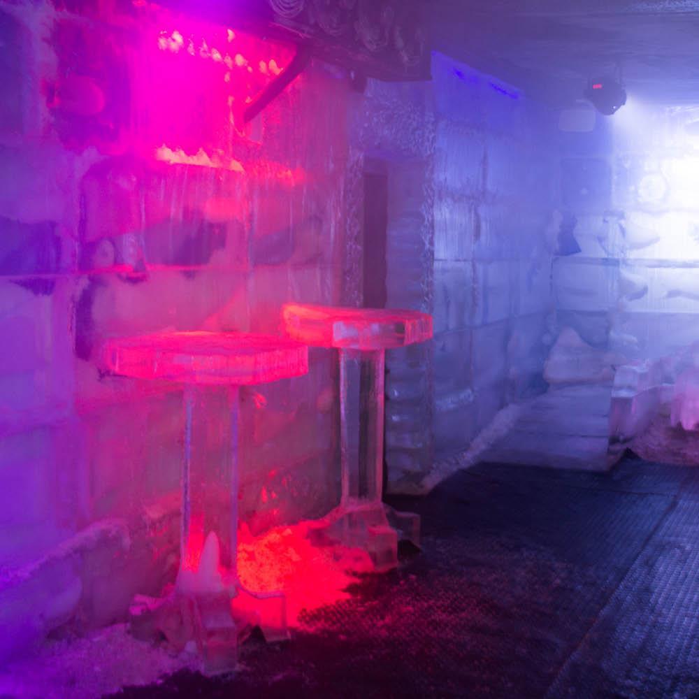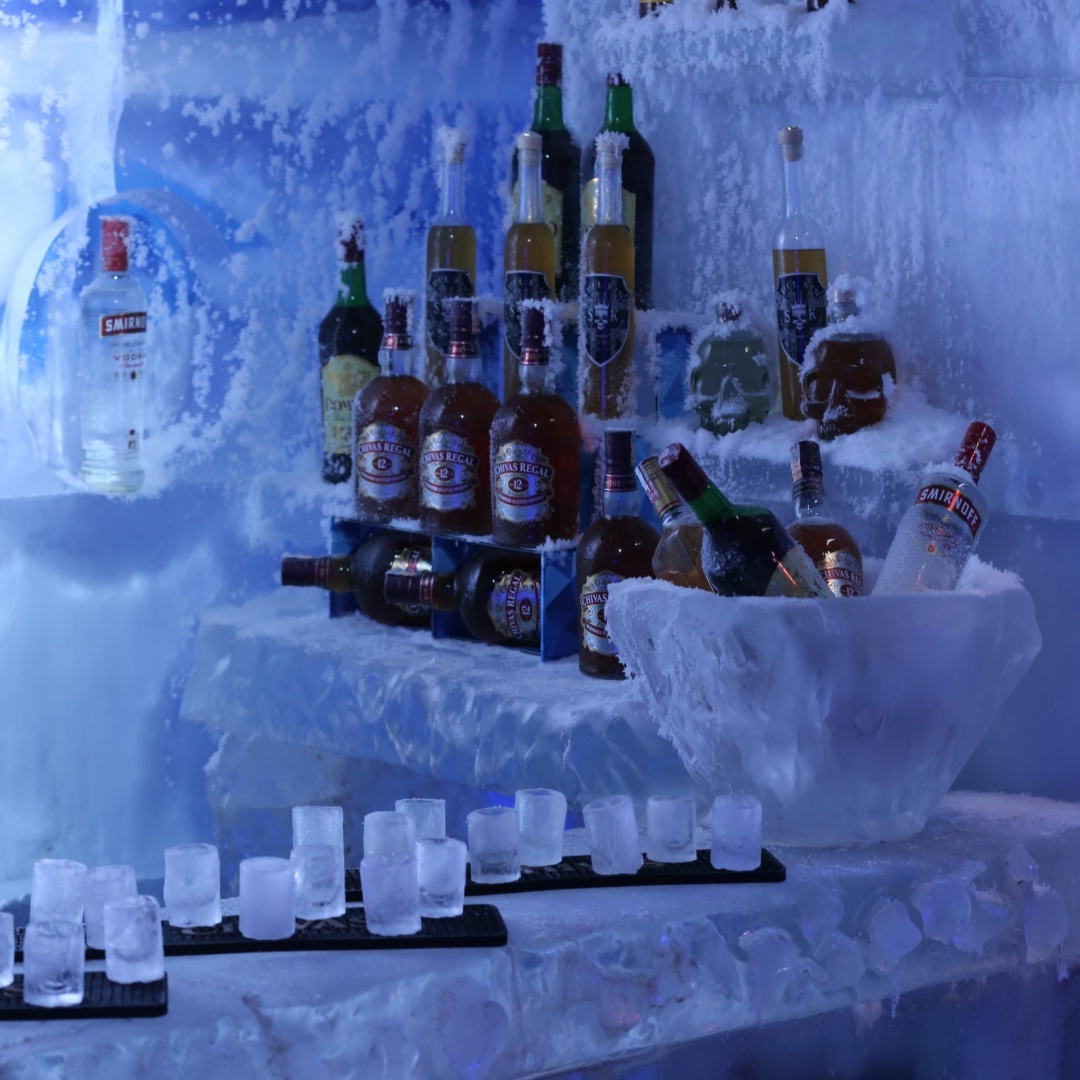 Este é o primeiro bar de gelo de Campos do Jordão, e oferece drinks especiais no bar de gelo que fica no subsolo e também opções de drinks frios e quentes no bar da área fora do espaço com gelo, funcionando como uma área prévia com bancos, mesas, o balcão do bar e uma lojinha de souveniers. Entre os destaque do menu estão bebidas à base de vodca, chocolate quente, refrigerantes, sucos, cervejas, chopes e drinks elaborados pelos bartenders, resfriados em nitrogênio.