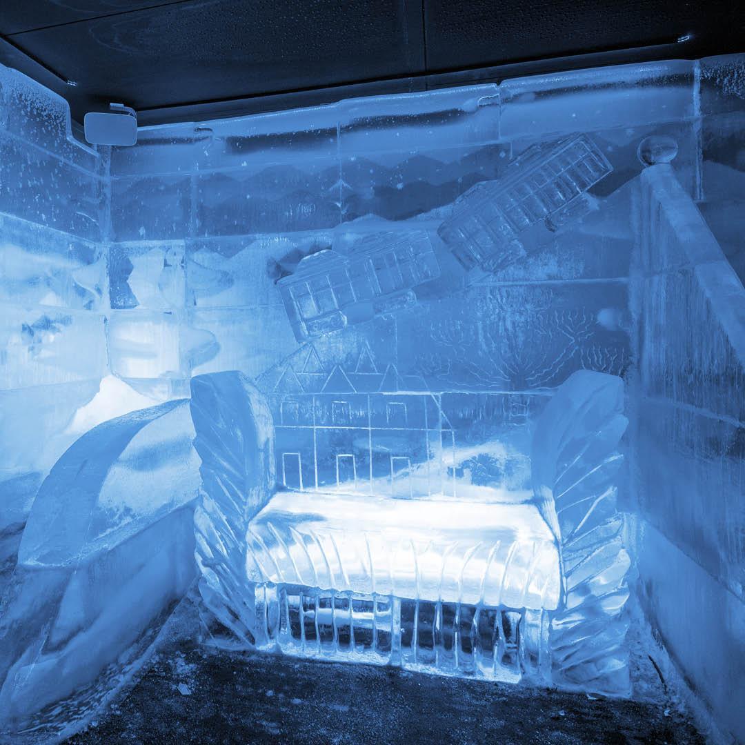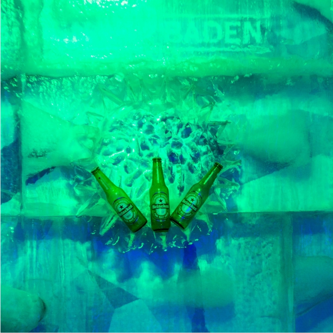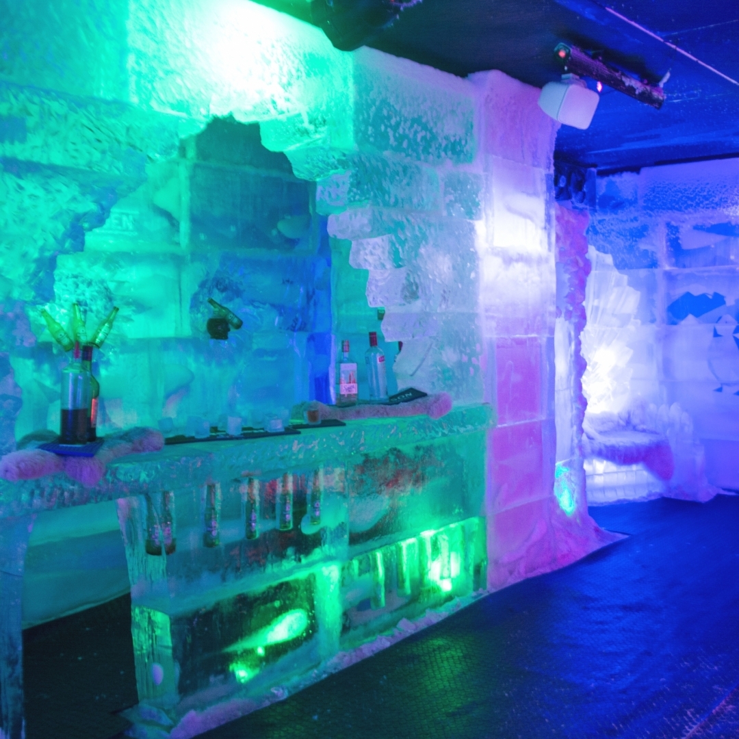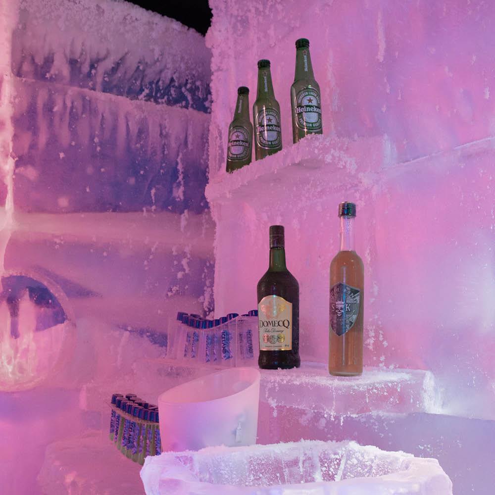 Uma pulseira branca no braço mostra ao barman que ele pode te servir as bebidas. Lá dentro há um escorregador de gelo, para descer é preciso subir alguns degraus e sentar em cima do casaco (ele é comprido) para escorregar e não molhar a roupa.