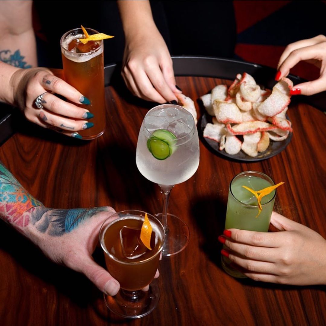 Com uma coquetelaria bem executada e cuidadosa, a carta homenageia a Mata Atlântica e seus ingredientes nativos, também compõe o cardápio comidinhas práticas como aperitivos.