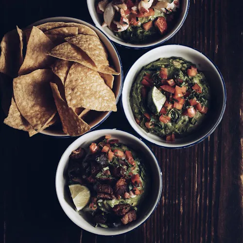 Alguns pratos em destaque são a guacamole misturada com carangueijo gigante do Atlântico, lagosta e vinho de alho com manteiga, acompanhado de tacos com lombo e crosta crocante de cebolas. Outra opção é o atum grelhado picante com palitos de batata doce por cima. Apesar de alguns pratos já bem completos, o que se destaca mesmo no restaurante são as opções de acompanhamentos que podem ser pedidas separadas e durante a refeição ir provando e compartilhando várias ao mesmo tempo - inclusive isso faz parte da experiência e se torna um momento bem divertido.