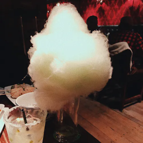 Tanto pratos quanto os drinks são servidos de forma dramática e muito autêntica. Cada mesa começa a experiência recebendo um drink comestível de boas-vindas, cortesia da casa, numa infusão de sorvete de toranja com hortelã e tequila sobre um caldeirão borbulhante de gelo seco. O mimo toma conta de toda a mesa e causa um efeito incrível logo de cara. E os agrados não param por aí: ao final da refeição outra surpresinha chega para os clientes: um enorme algodão doce de maçã verde azedinho, polvilhado com pedras de cereja, chega cuidadosamente colocado sobre um copinho de vidro para ser compartilhado com todos. Prometemos: não é um algodão doce qualquer.