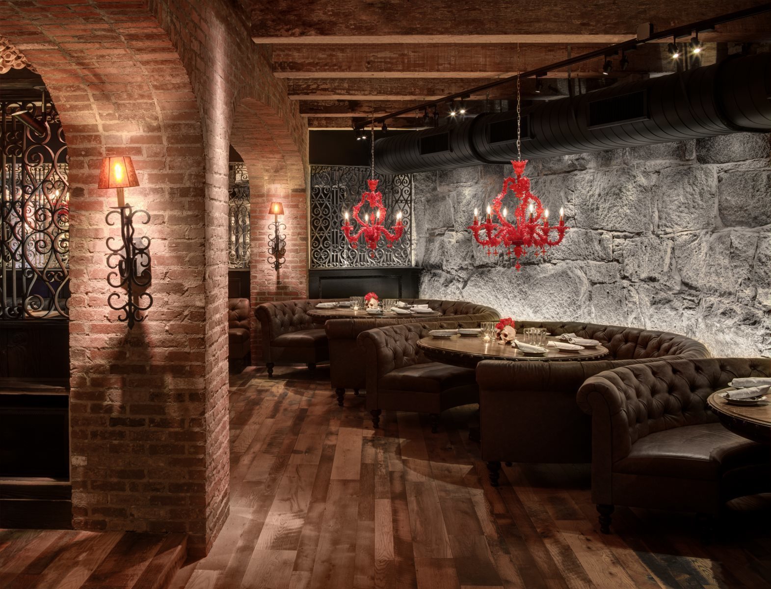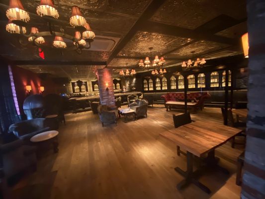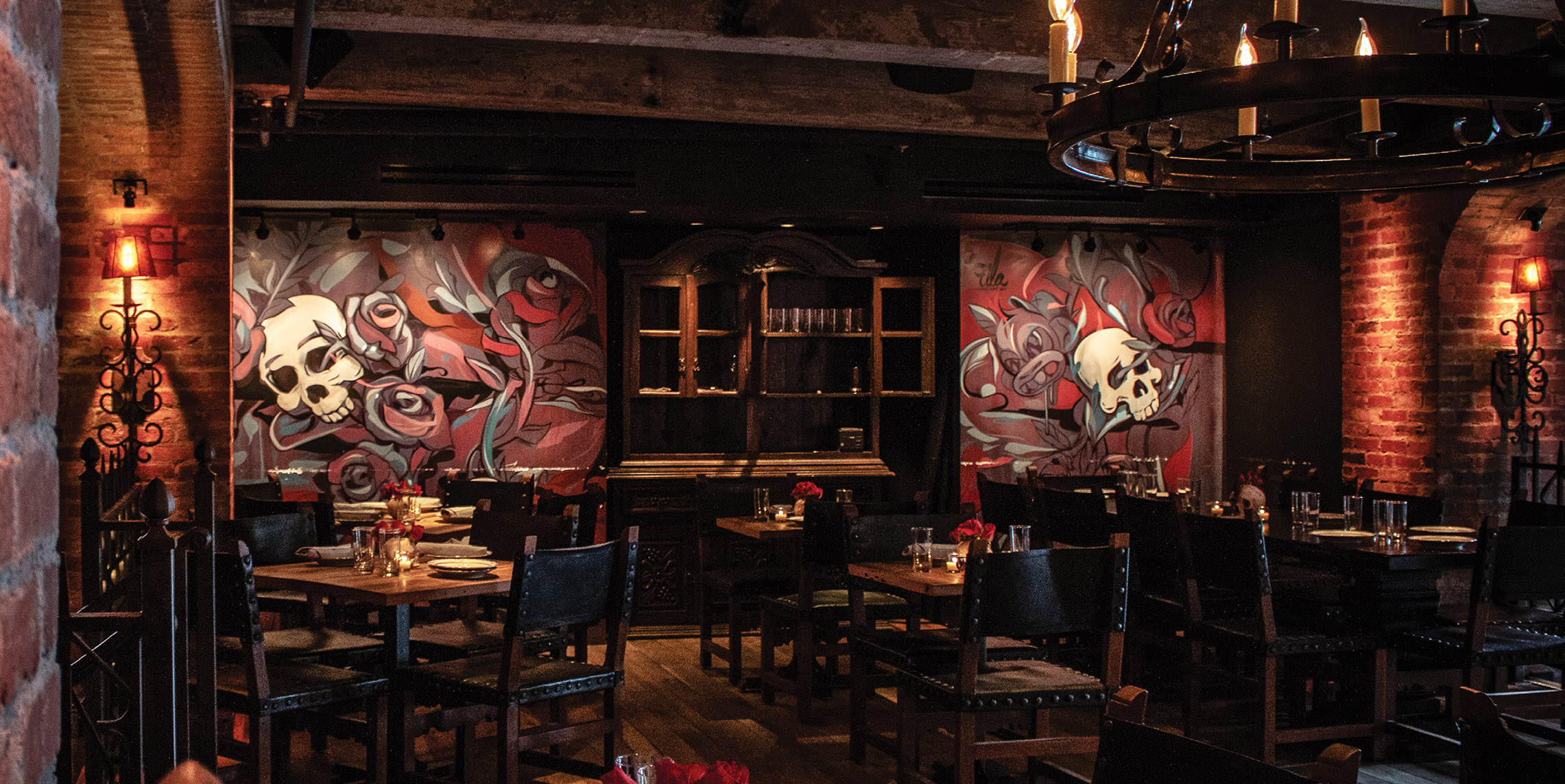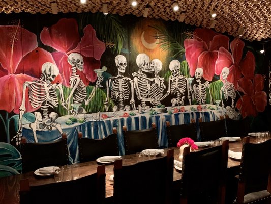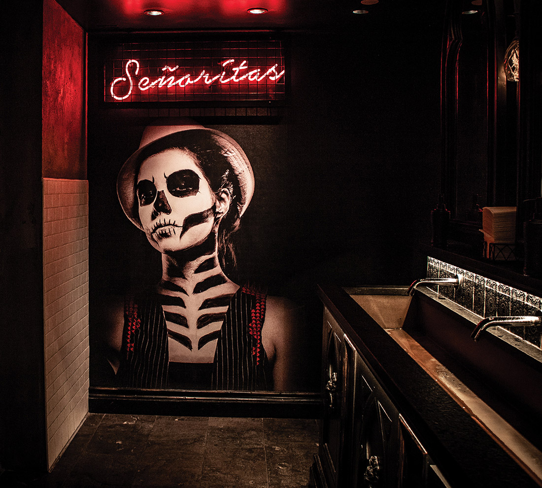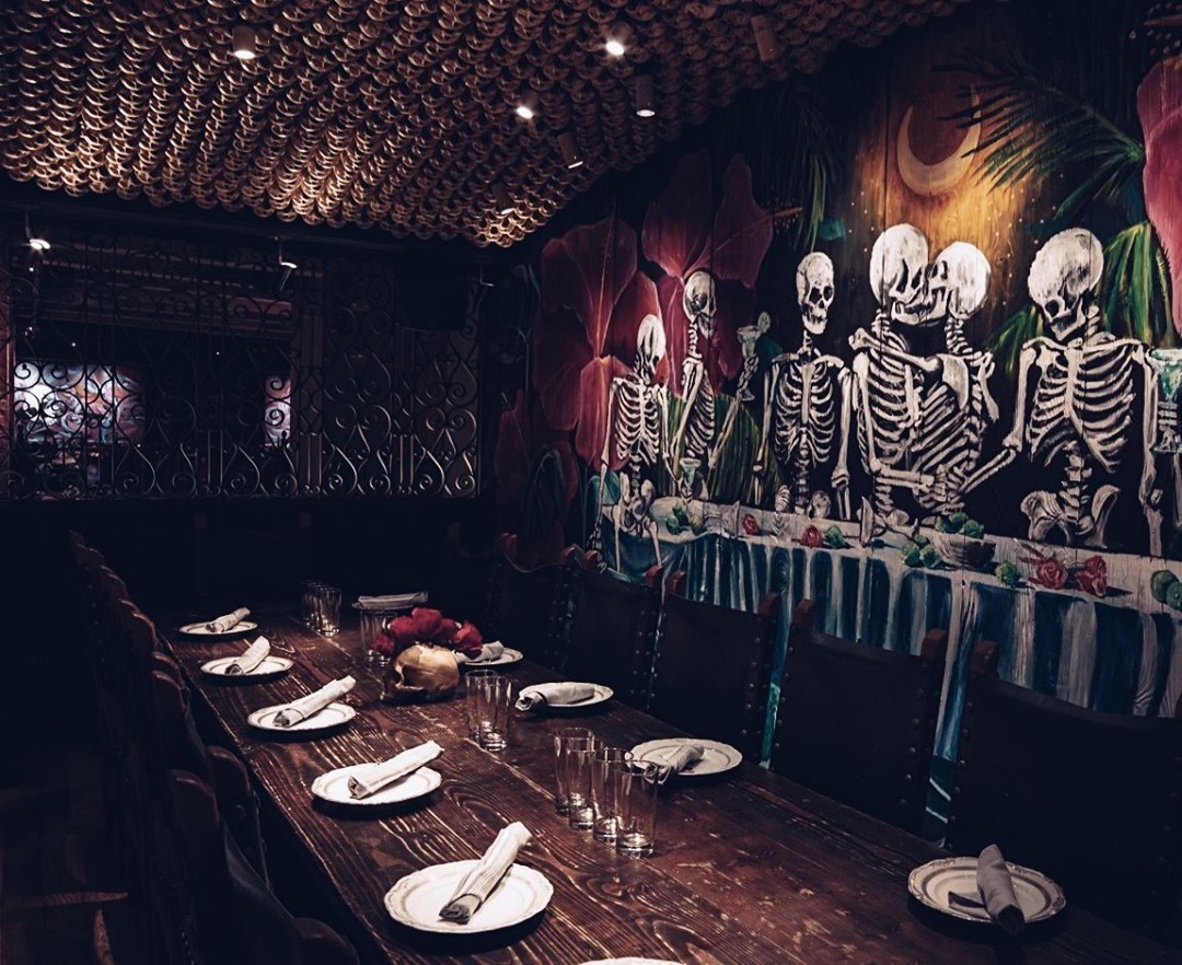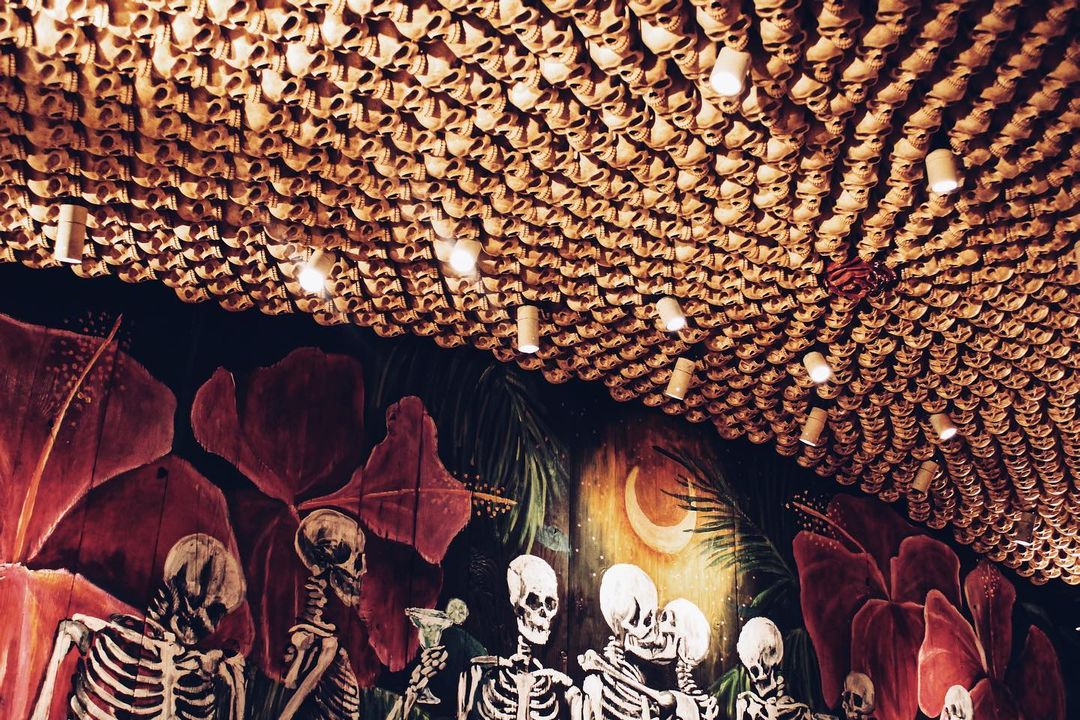 No interior a decoração é um show à parte: logo acima de uma grande mesa compartilhada dezenas de crânios fazem a forração do teto. As mesas são opções desde duas pessoas até lugares singulares no bar, mesas compartilhadas ou para grandes grupos e lounges com mesas e sofás.