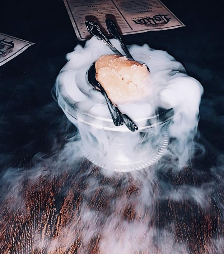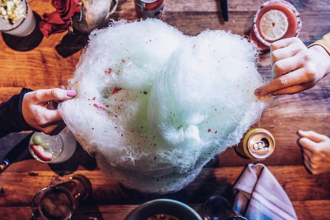 Tanto pratos quanto os drinks são servidos de forma dramática e muito autêntica. Cada mesa começa a experiência recebendo um drink comestível de boas-vindas, cortesia da casa, numa infusão de sorvete de toranja com hortelã e tequila sobre um caldeirão borbulhante de gelo seco. O mimo toma conta de toda a mesa e causa um efeito incrível logo de cara. E os agrados não param por aí: ao final da refeição outra surpresinha chega para os clientes: um enorme algodão doce de maçã verde azedinho, polvilhado com pedras de cereja, chega cuidadosamente colocado sobre um copinho de vidro para ser compartilhado com todos. Prometemos: não é um algodão doce qualquer.