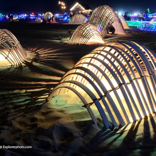 No meio dos campings há de tudo: lounges para descanso, carros artísticos, decorados um diferente do outro com muita criatividade. No meio dos oito dias acontece a noite do branco, a queima do grande homem "o Man", onde todos se reúnem para um ritual mágico. Há também a noite mais especial e marcante: a queima do Templo, onde burners deixam seus desejos, dedicatórias, homenagens e recordações, criando uma atmosfera imensa grande de energia e uma sensação única.