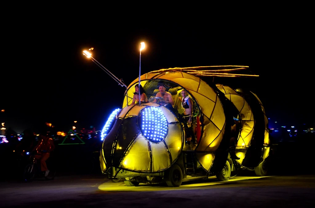 No meio dos campings há de tudo: lounges para descanso, carros artísticos, decorados um diferente do outro com muita criatividade. No meio dos oito dias acontece a noite do branco, a queima do grande homem "o Man", onde todos se reúnem para um ritual mágico. Há também a noite mais especial e marcante: a queima do Templo, onde burners deixam seus desejos, dedicatórias, homenagens e recordações, criando uma atmosfera imensa grande de energia e uma sensação única.
