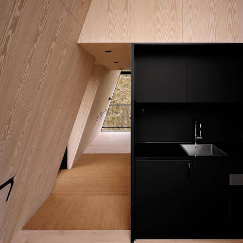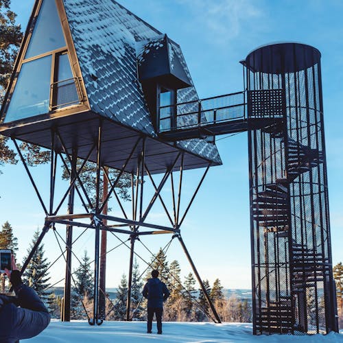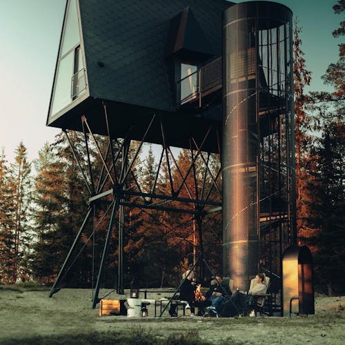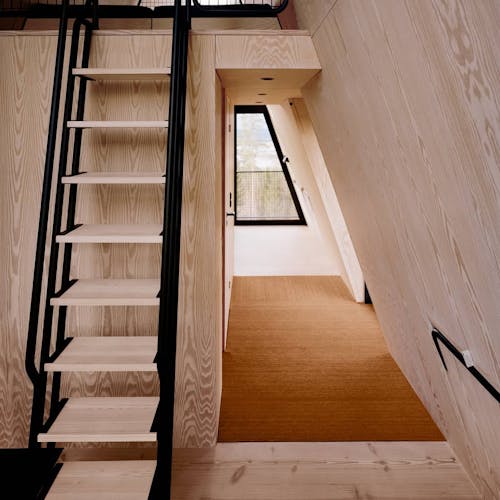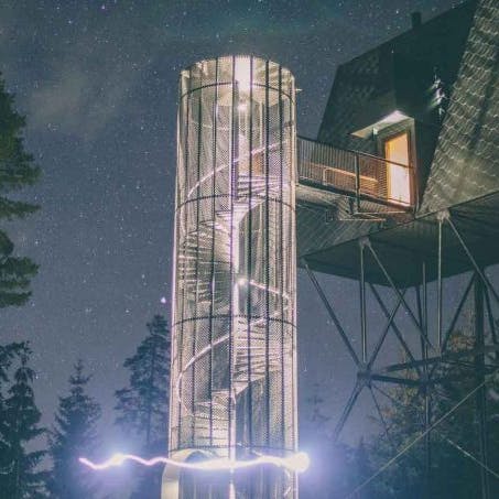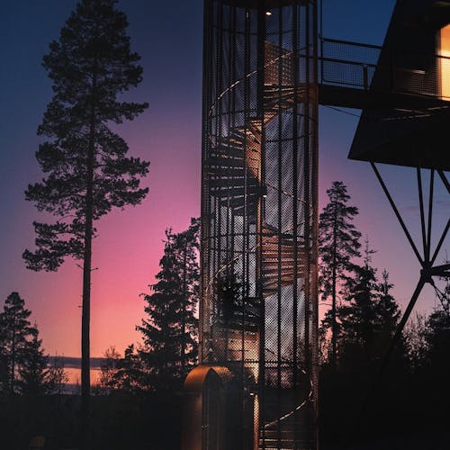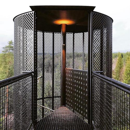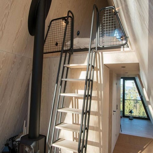 Uma escada em caracol envolta em um cilindro com fio leva até a cabina. A luz natural permeia a fiação que compõe o cilindro. Abaixo das cabines, há peças de aço trançado que servem de apoio. As cabanas não são fixadas às árvores por medida de segurança e preservação da natureza. Em vez de sentir o balanço das cabanas com o vento, as árvores se moverão enquanto as construções permanecem paradas. Cada uma é colocada no topo de quatro pilares que são ancorados em solo rochoso natural, o que as torna tão seguras quanto uma casa construída no solo. As PAN foram construídas para resistir à força de mais de dois furacões, tornando-as seguras para qualquer condição climática que esta parte da Noruega venha a enfrentar.