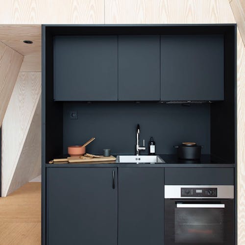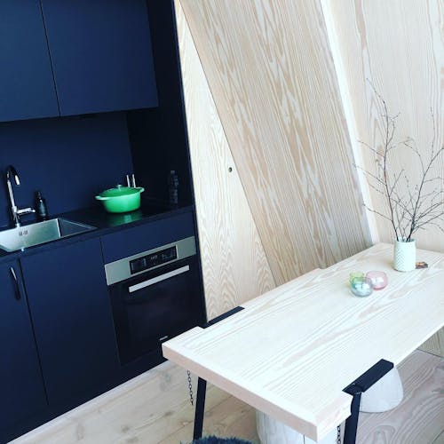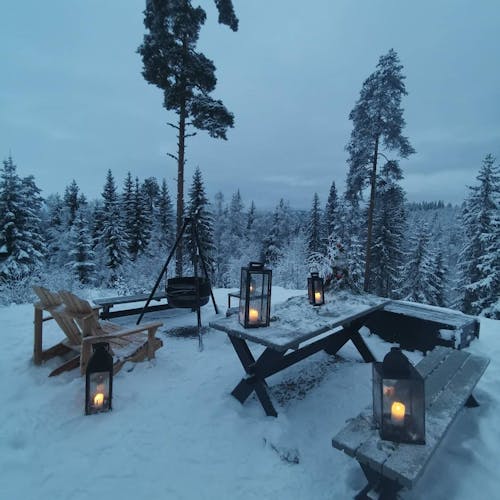 As cabanas têm 40m2, eletricidade, chuveiro, cozinha e três dormitórios separados. Com camas confortáveis e grandes janelas, os hóspedes irão acordar com uma vista panorâmica sobre Finnskogen.
